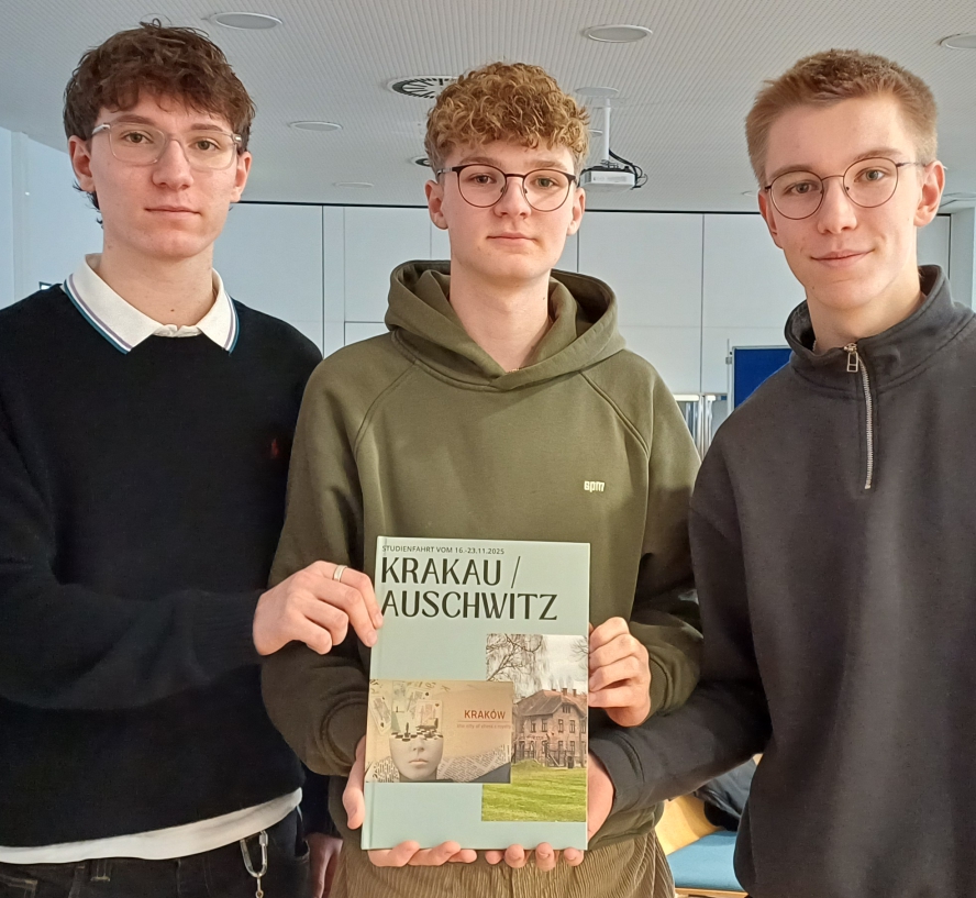 Jaron, Lennart und Arne (von links) waren schon bei einer Studienfahrt in Auschwitz, die Eindrücke wurden in einem Buch festgehalten.