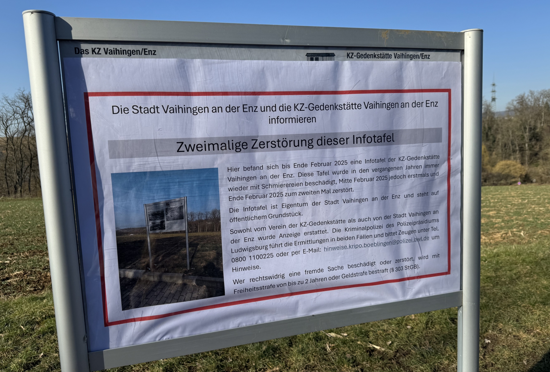 Vaihinger KZ-Gedenkstätte macht mit Plakat auf Zerstörung aufmerksam