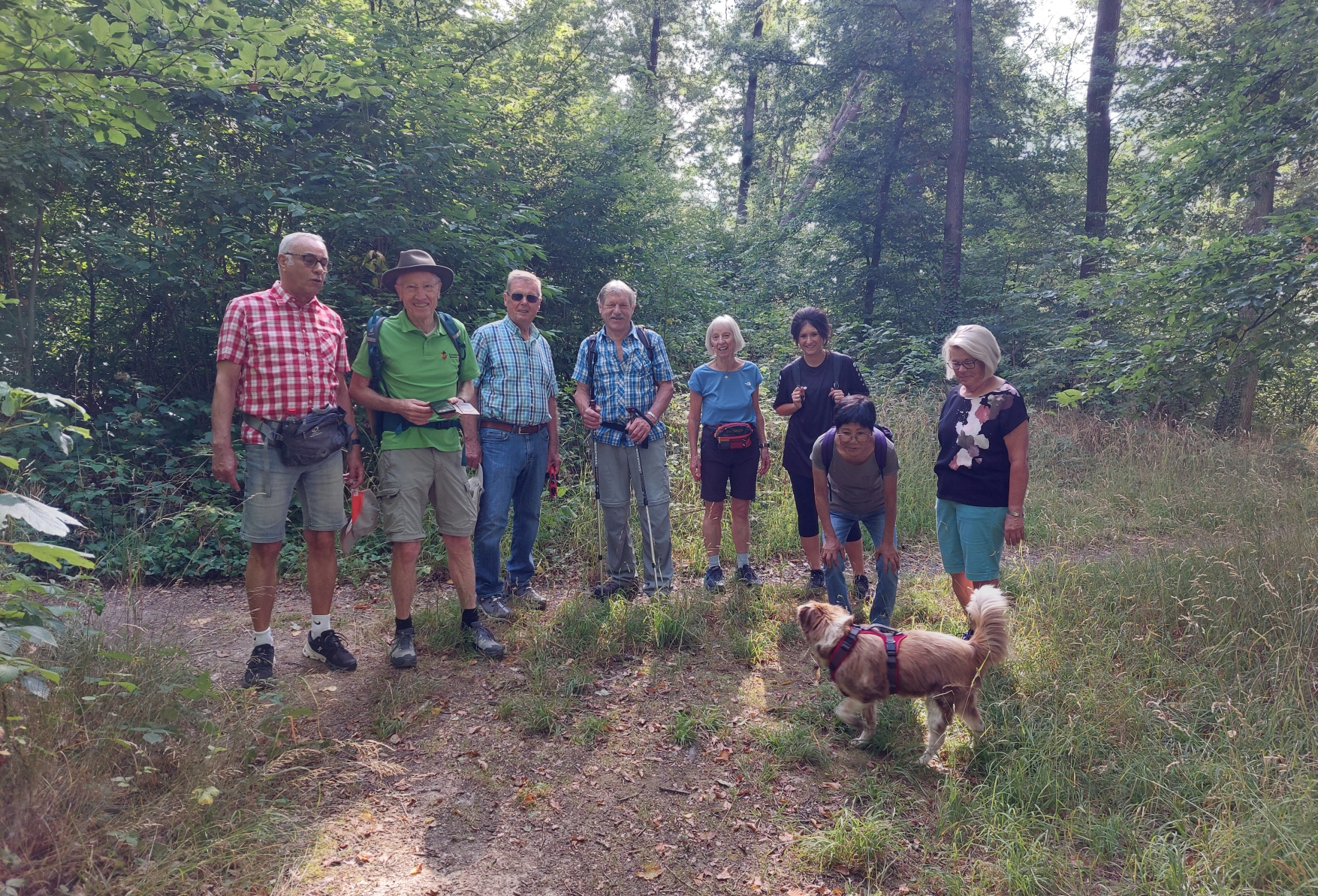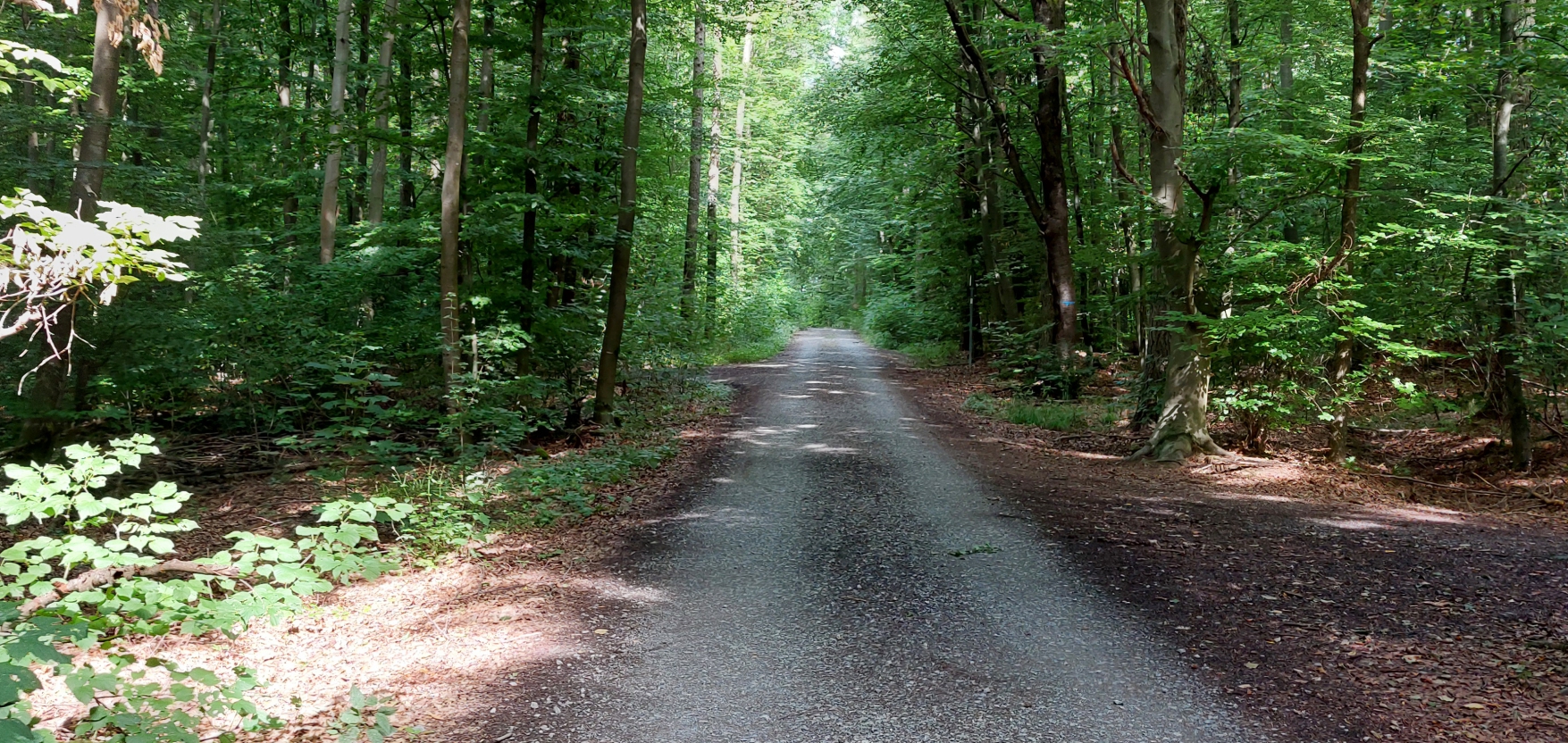 Nach einer kurzen Erholungspause, bei der übrigens auch die eigenen Getränkeflaschen wieder aufgefüllt werden können, queren die Wanderer die Straße und gehen durch den Bauernwald in Richtung Eberdingen.