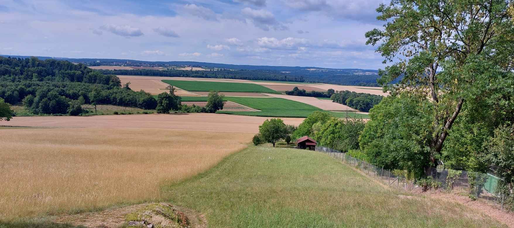 Am Waldrand geht es dann rechts ab und wieder in den Wald, bis das Gebiet „Zittlesbrunnen“ erreicht wird. Dem geradeaus führenden Weg wird bis hoch zum Häckselplatz gefolgt. Dort biegen die Wanderer rechts auf den Weg zum Hohscheid ab und folgen diesem, bis sie wieder einen schönen Panoramablick auf Hochdorf, den Asperg und die fantastische Landschaft haben.