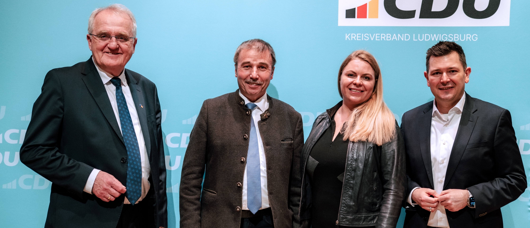 Konrad Epple (Zweiter von links) ist CDU-Direktkandidat im Wahlkreis Vaihingen. Es gratulieren Rainer Wieland, Zweitkandidatin Anna-Lena Beiermeister und Tobias Vogt. Foto: Hannes Griepentrog