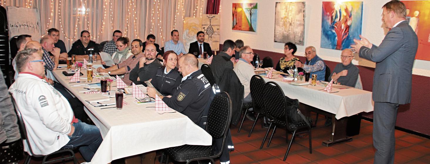 Vorbereitungssitzung für die 39. S-VKZ-Tour am Dienstagabend in der Gaststätte „Zum Strudelbächle“. Stehend VKZ-Geschäftsführer Hartmut Villinger. Am 18. August ist das Sportgelände des SV Riet das Ziel. Fotos: Arning