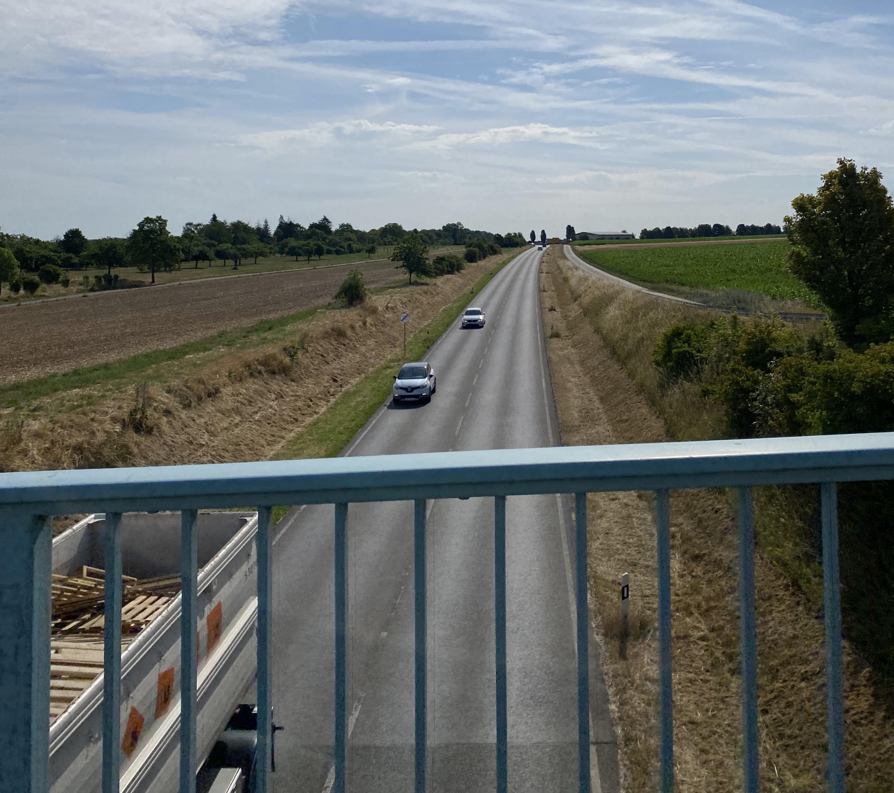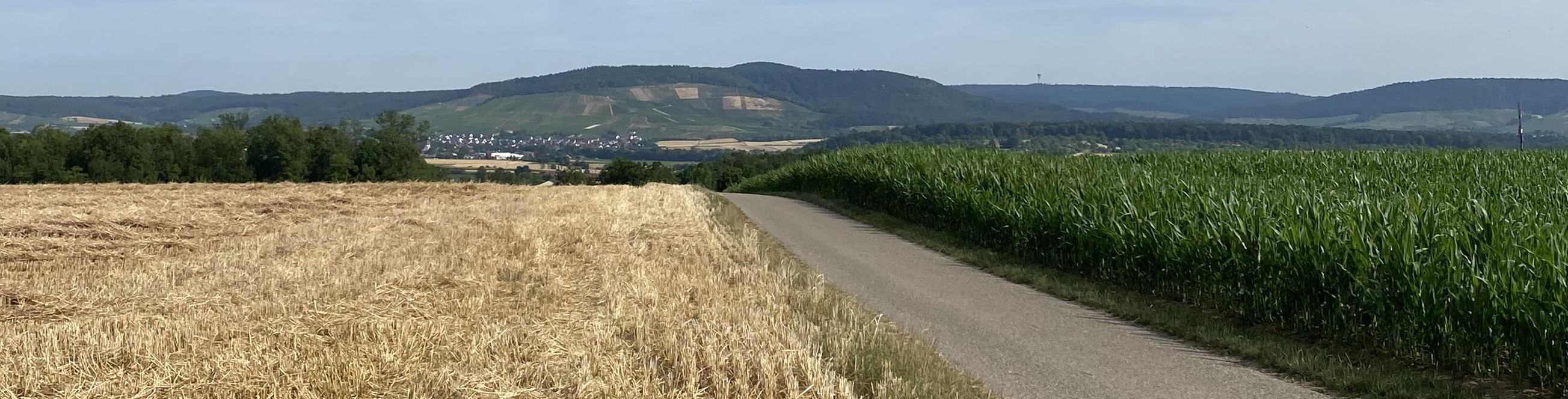 Danach endet die Strecke durch den Ort und es geht weiter in Richtung der großen Felder auf den Oberriexinger Weg. Weiter führt der Weg entlang der Brücke über die Bahnstrecke. Danach geht es immer weiter geradeaus.