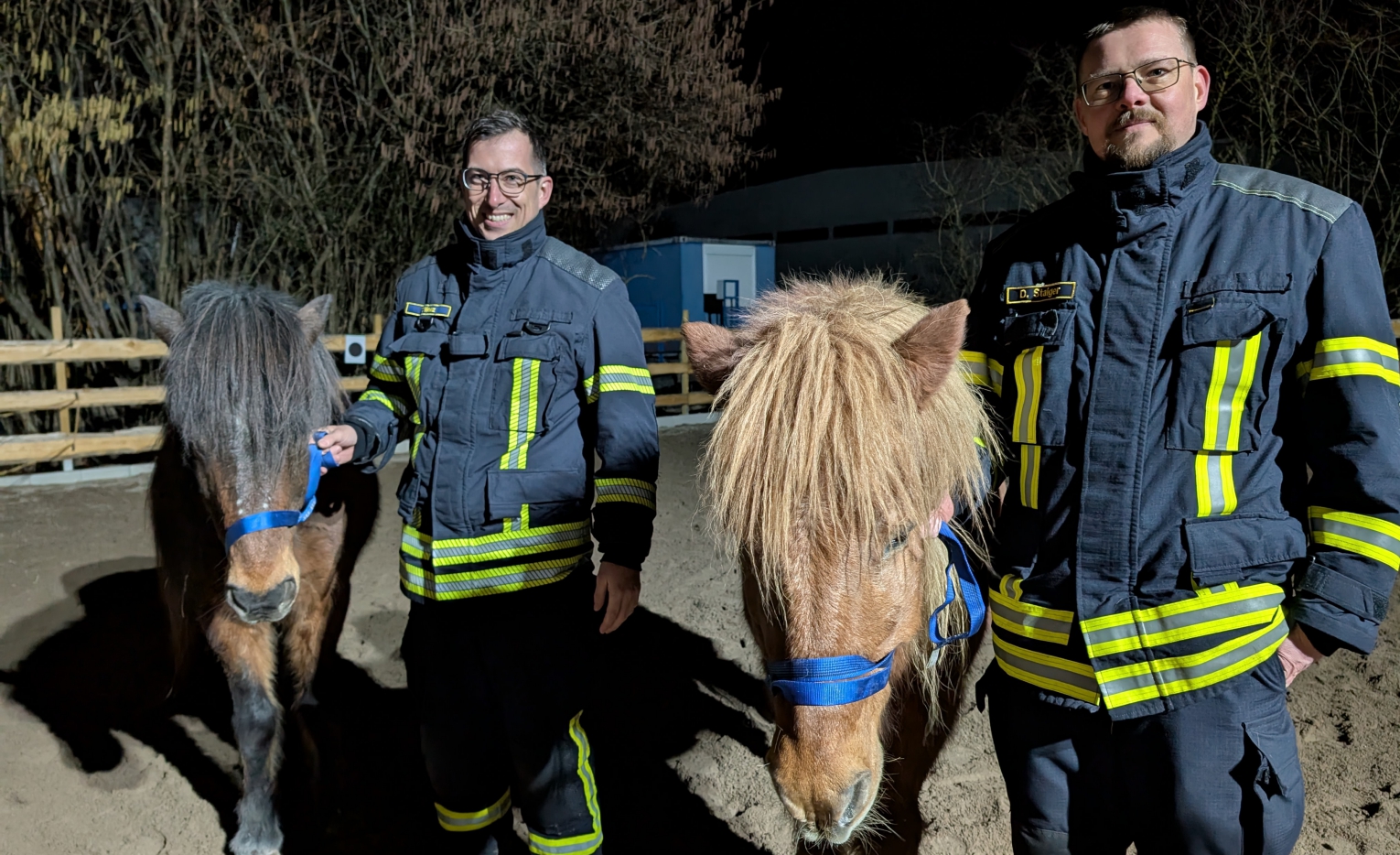 Keine Angst vor großen Tieren: Feuerwehr Vaihingen übt bei den TVV-Reitern