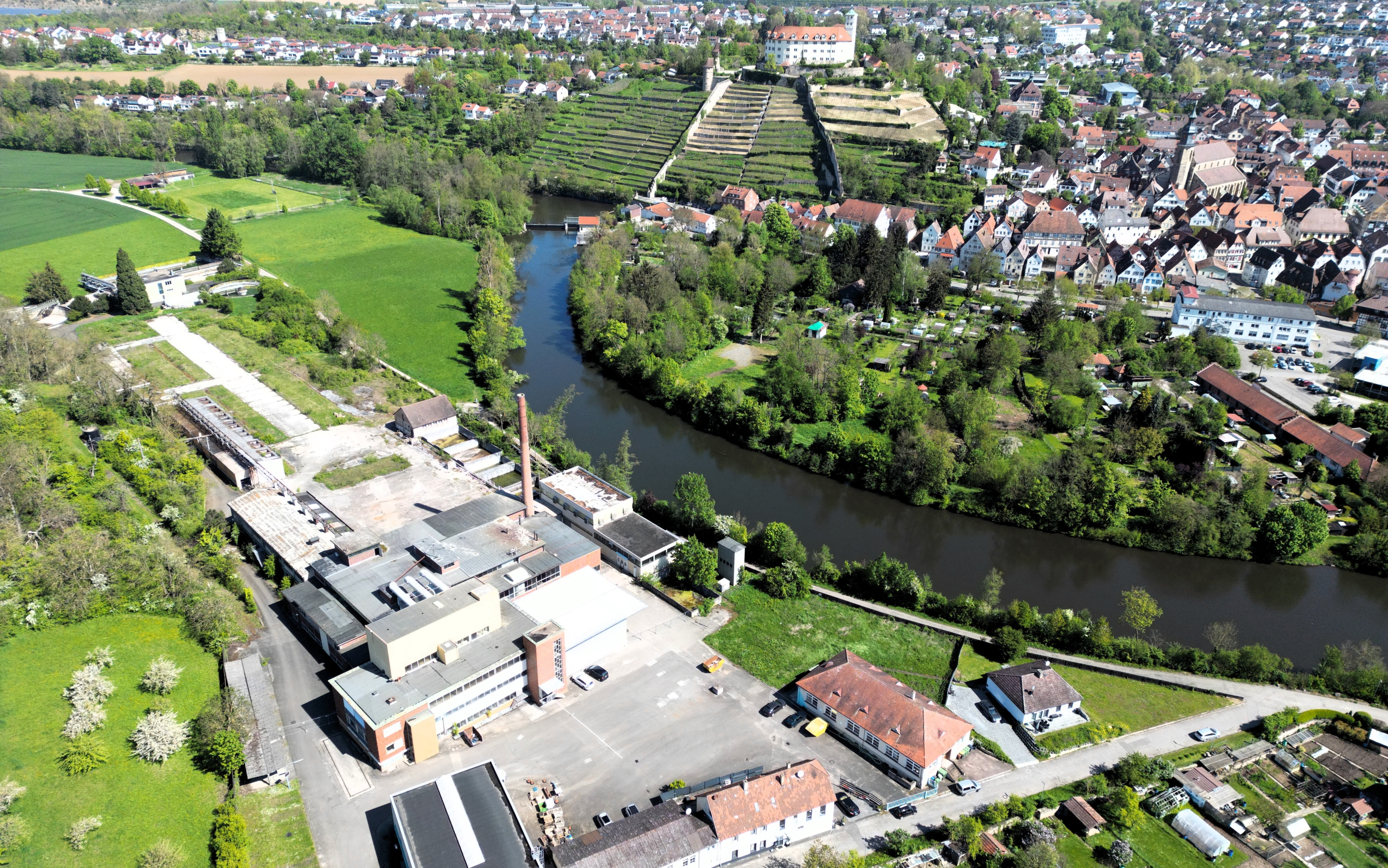 Spielt bei der Gartenschau „Enzückt 2029“ in Vaihingen eine große Rolle: das ehemalige Areal der Firma Häcker. Auf der anderen Seite der Enz sind die Bürgergärten. Archivfoto: Küppers/VKZ