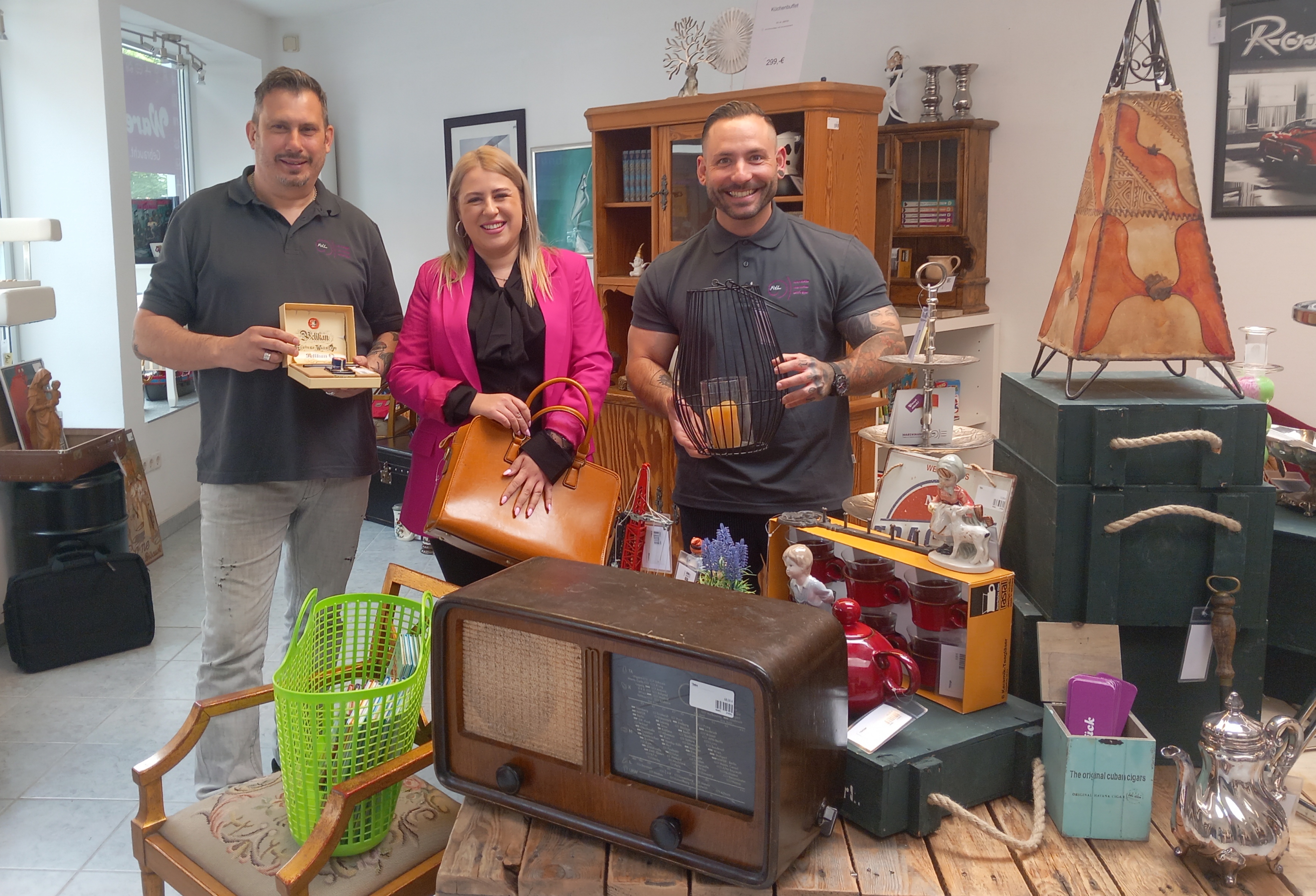 Hier gibt’s einiges zu entdecken für Secondhand-Liebhaber: Philipp Hirten, Melanie Jokic und Nico Krawczyk (von links) sind bei der AVL Ludwigsburg für das Kaufhaus „Warenwandel“ und die Filiale in Sachsenheim zuständig. Foto: Glemser