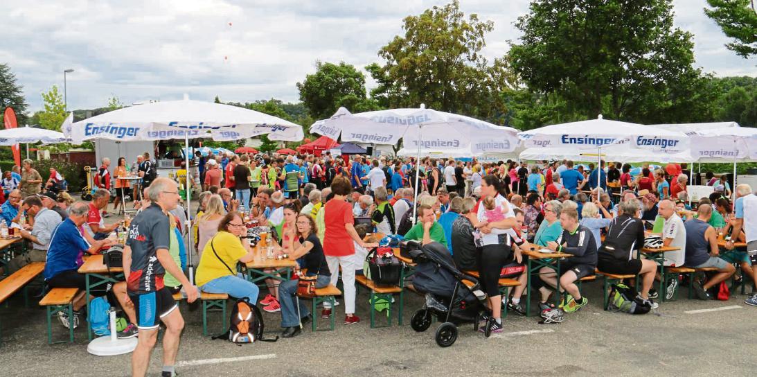 Von den knapp 900 Tour-Teilnehmern lassen sich die meisten noch bei der Hocketse vom TSV Oberriexingen verwöhnen. Fotos: Rücker