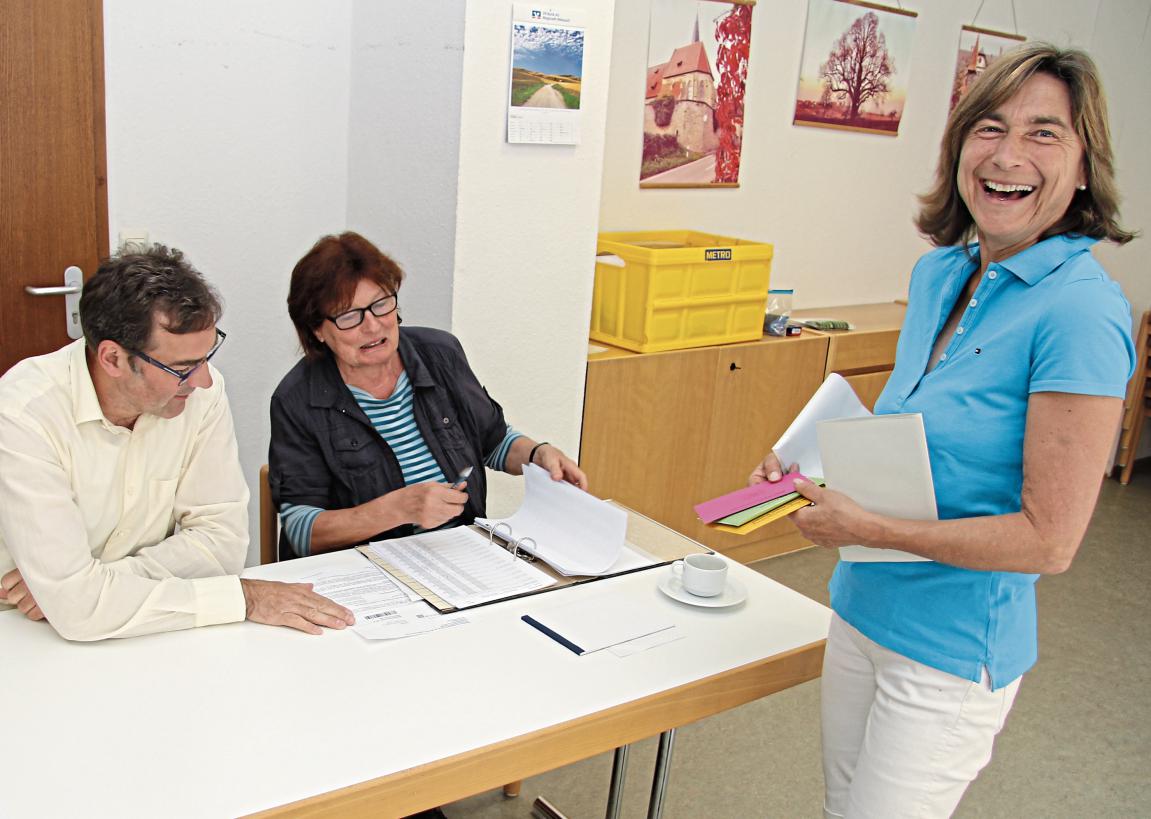Am Superwahlsonntag darf auch mal gelacht werden, hier im Wahllokal in der Nussdorfer Verwaltungsstelle. Fotos: Rieger