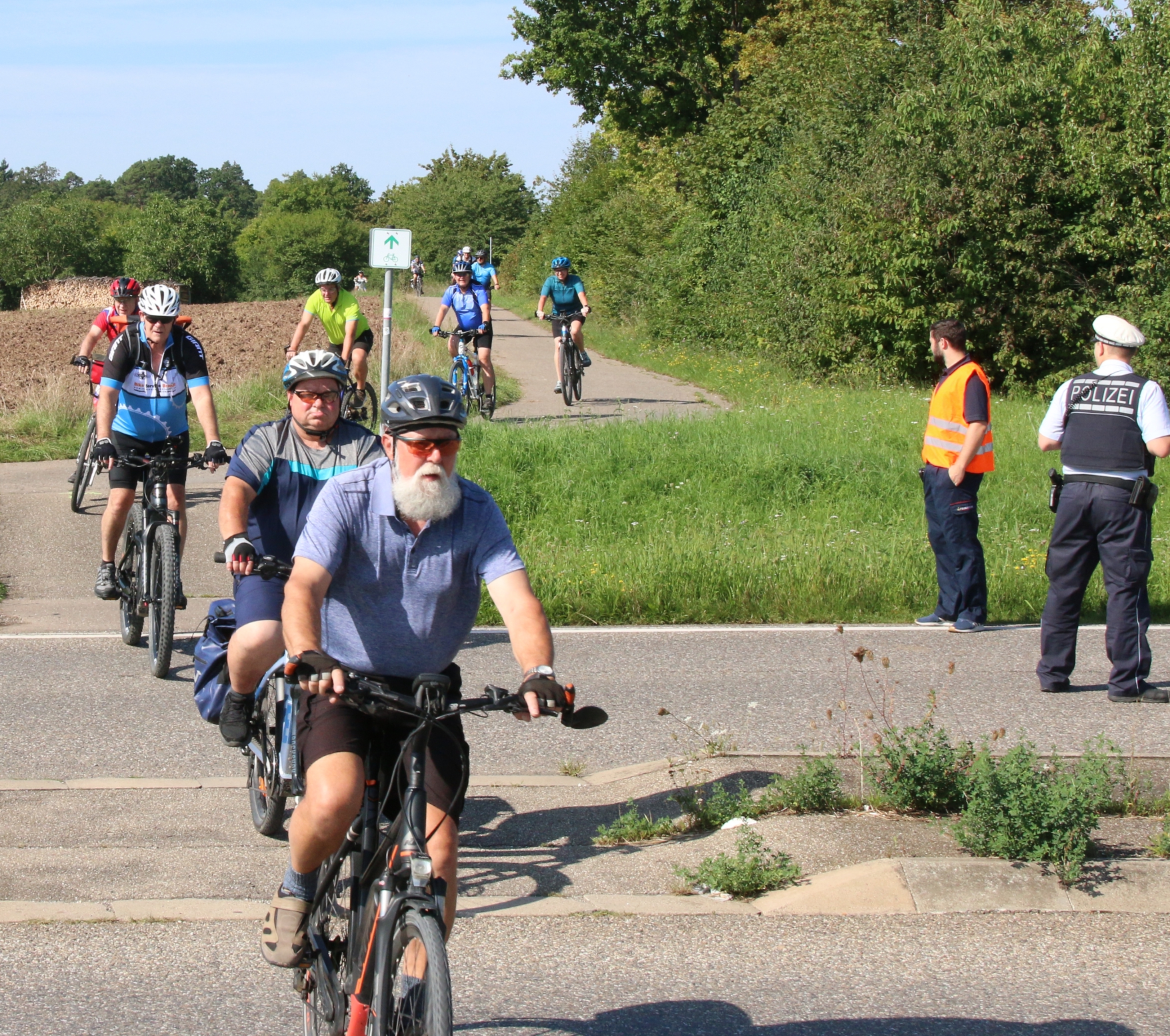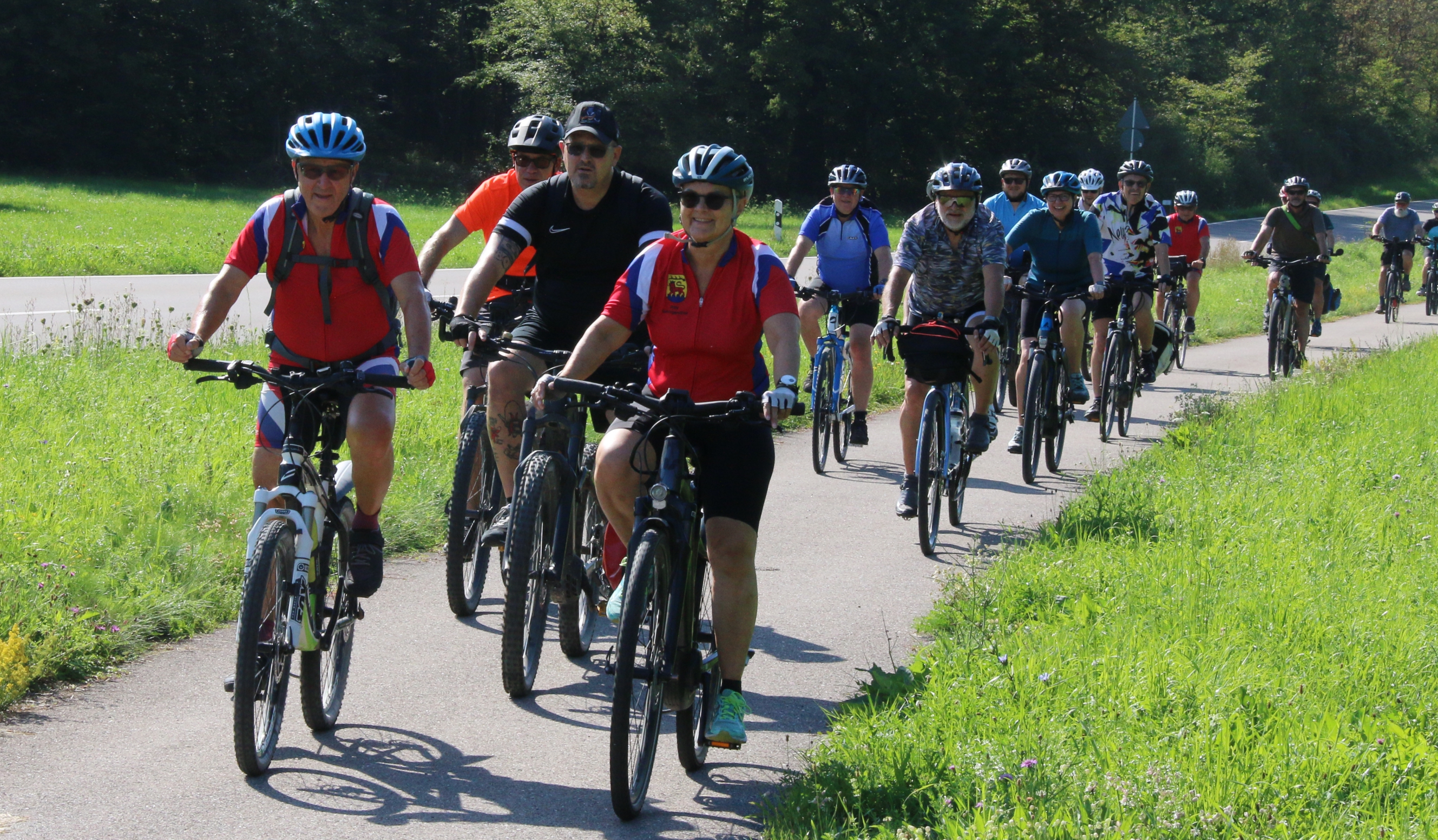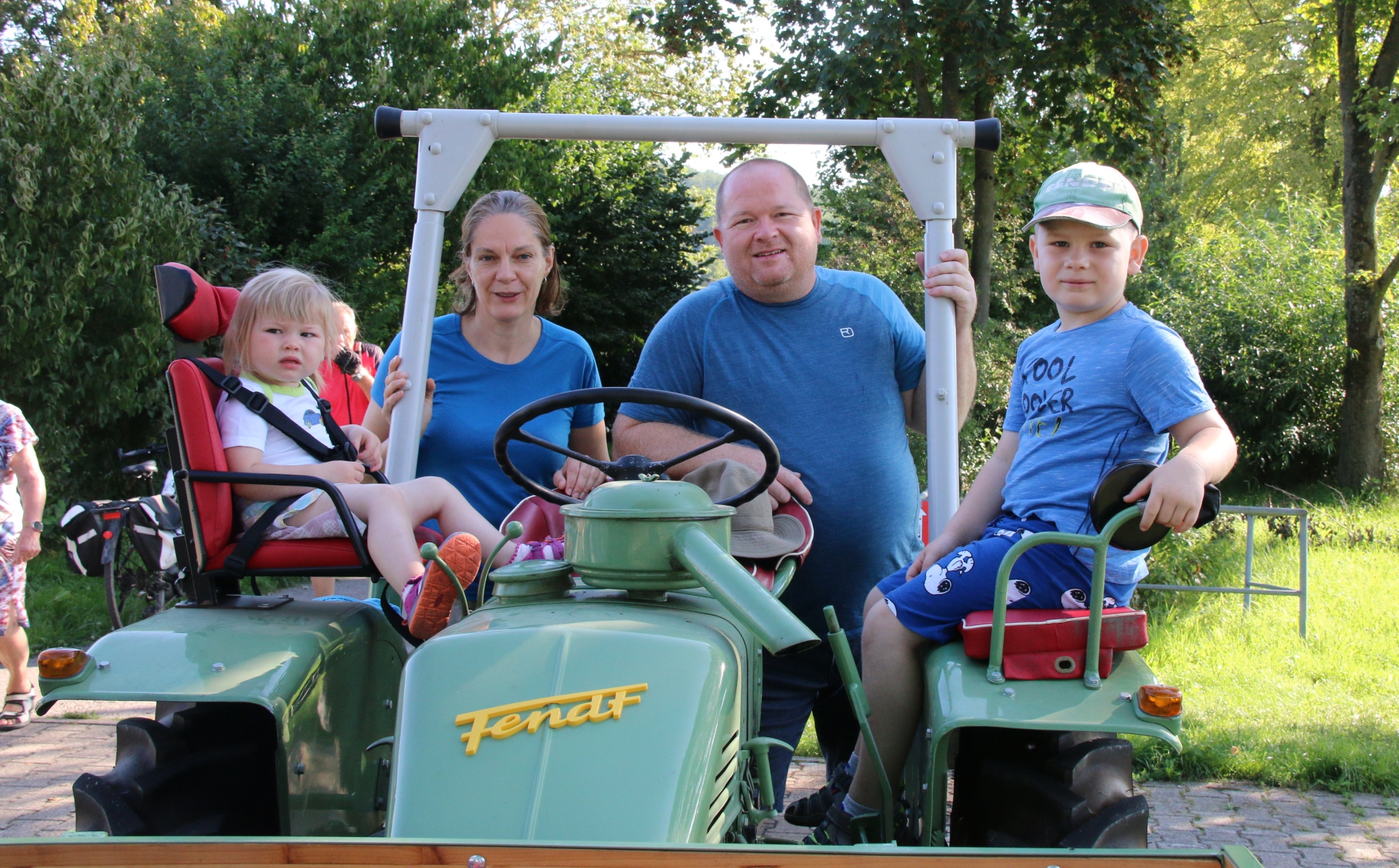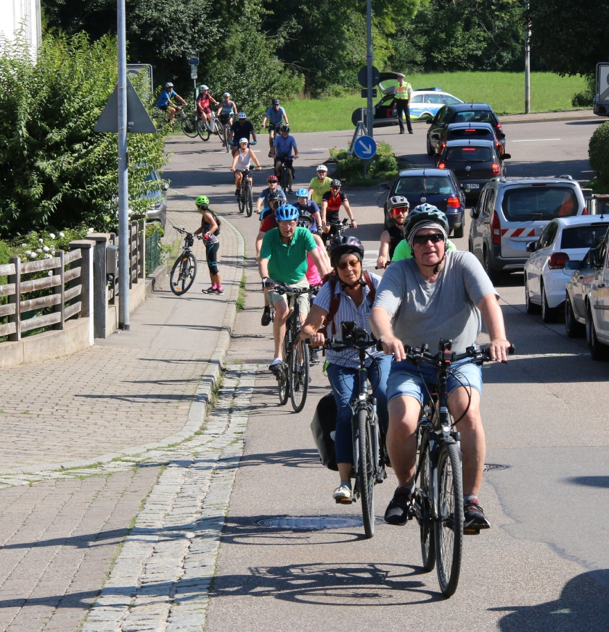 Die Familie Fechner kommt mit dem Fendt Geräteträger aus Gündelbach zur S-VKZ-Tour am Samstag nach Kleinglattbach. Nach der Traktorfahrt geht es auf die Wanderstrecke. „Und dann tuckern wir wieder gemütlich heim. Aber im Schatten“, sagt Günter Fechner. meldet die Feuerwehr Bedenken an. Beim Ausschildern am Freitag gibt es beim Römerhof in Oberriexingen zwei Streckenvorschläge. Die offizielle Route führt ins Enztal runter oder eben die Abkürzung, wenn man einfach auf dem sogenannten Promillesträßle weiter gen Vaihingen rollt. Aber da stehen dann keine Posten der Feuerwehr – beispielsweise bei der Einmündung der Eichendorffstraße. Also zu gefährlich, das Schild für die kürzeren Route wird dann kurzerhand von der Feuerwehr abmontiert. bei der Tour dabei ist, ist der Vaihinger Stadtrat Peter Schimke. Sonst ist er immer mit dem Fahrrad unterwegs, am Samstag macht er sich aber das erste Mal auf die Wanderstrecke. Wegen einer Verletzung an der Hand. Bei dem Aussteigen aus einer Kabine im Erlebnispark Tripsdrill ist Schimke hängengeblieben. Die Wunde an der Hand musste genäht werden. Peter Schimke marschiert mit einem Verband bei der Hitze mit. von Ensinger Mineral-Heilquellen sorgen am Samstag bei Temperaturen über 30 Grad für die kostenlose Erfrischung für die Radler und Wanderer. Für die Station beim Sachsenheimer Schützenhaus hat Kütterer mehr als 80 Kisten Wasser, Apfelsaftschorle und Iso-Getränke im Transporter geladen. ist mit elf Helfern bei der Tour dabei. Im Einsatz ist auch wieder die Motorradstaffel. Nach Angaben von Einsatzleiter Konstantin Frank gibt es zwei Schürfwunden nach Stürzen zu behandeln – einmal in Sachsenheim, einmal kurz vor dem Ziel. Walter Hertler aus Aurich kommt bei der Tour nicht besonders weit. Bei Sersheim gibt es einen Platten. Aber mithilfe von Martin Fischer von Zweirad-Fischer, der wieder für den mobilen Pannendienst sorgt, ist der Schaden schnell behoben. Hertler kann weiterradeln. bei der S-VKZ-Tour ist der Landtagsabgeordnete Konrad Epple. Er hat ganz normal eine Startkarte für einen Euro gekauft. „Sonst heißt es Vorteilsnahme im Amt“, sagt der Pedelec-Fahrer lachend. Nach seiner eigenen Erinnerung war Epple bis jetzt nur einmal nicht bei der Tour am Start. Das war, als zeitgleich der Schäferlauf in Markgröningen war. „Und das ist ein Nationalfeiertag“, sagt Epple. Gefeiert hat er vor einigen Tagen – seinen 60. Geburtstag. Deswegen gab es am Samstag ein Geschenk für ihn: Jürgen Pfeiffer von den Sersheimer Löwen hat ihm ein Trikot geschenkt. Natürlich das blau-weiße vom TSV 1860 München; über der Zahl 60 auf dem Rücken prangt der Name Konrad.