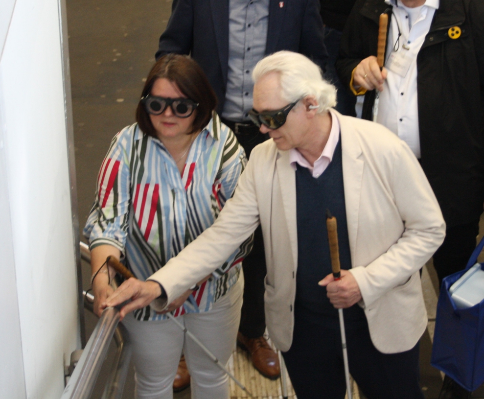 Mit Simulationsbrille und Langstock durch den Bietigheim-Bissinger Bahnhof
