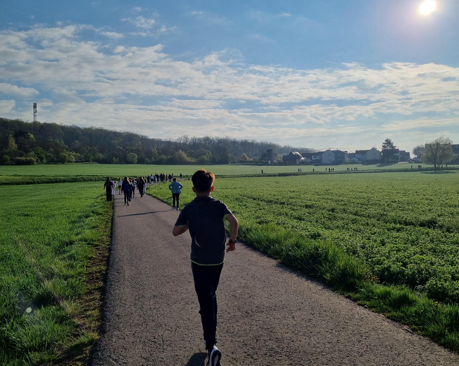 Der Sonne entgegen: Beim Sponsorenlauf der Ottmar-Mergenthaler-Realschule in Kleinglattbach sind rund 11000 Euro zusammengekommen.. Foto: p