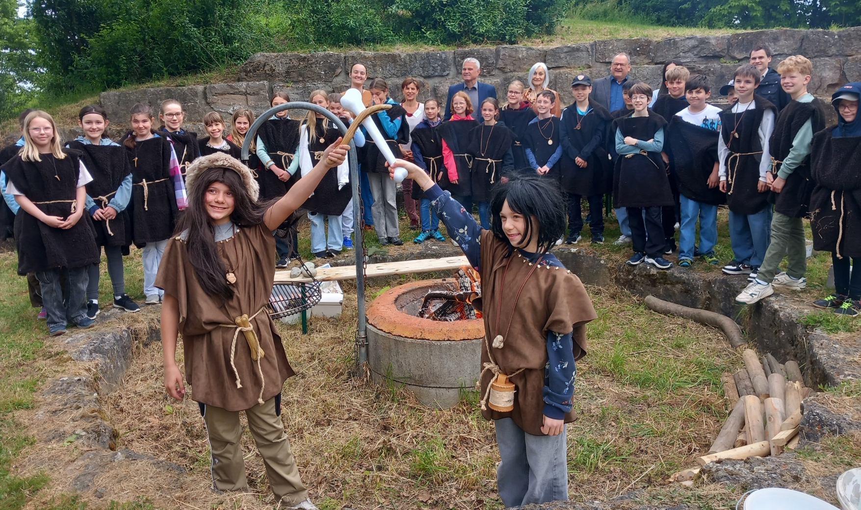 Sachsenheim. Sie entzündeten mit Steinen ein Feuer, probierten eine Speerschleuder aus, verkleideten sich mit Fellen und Anhängern aus Knochen und hackten mit einer Steinklinge Nüsse klein: Für rund 85 Schülerinnen und Schüler der fünften Klassen des Sachsenheimer Lichtenstern-Gymnasiums wurde beim…