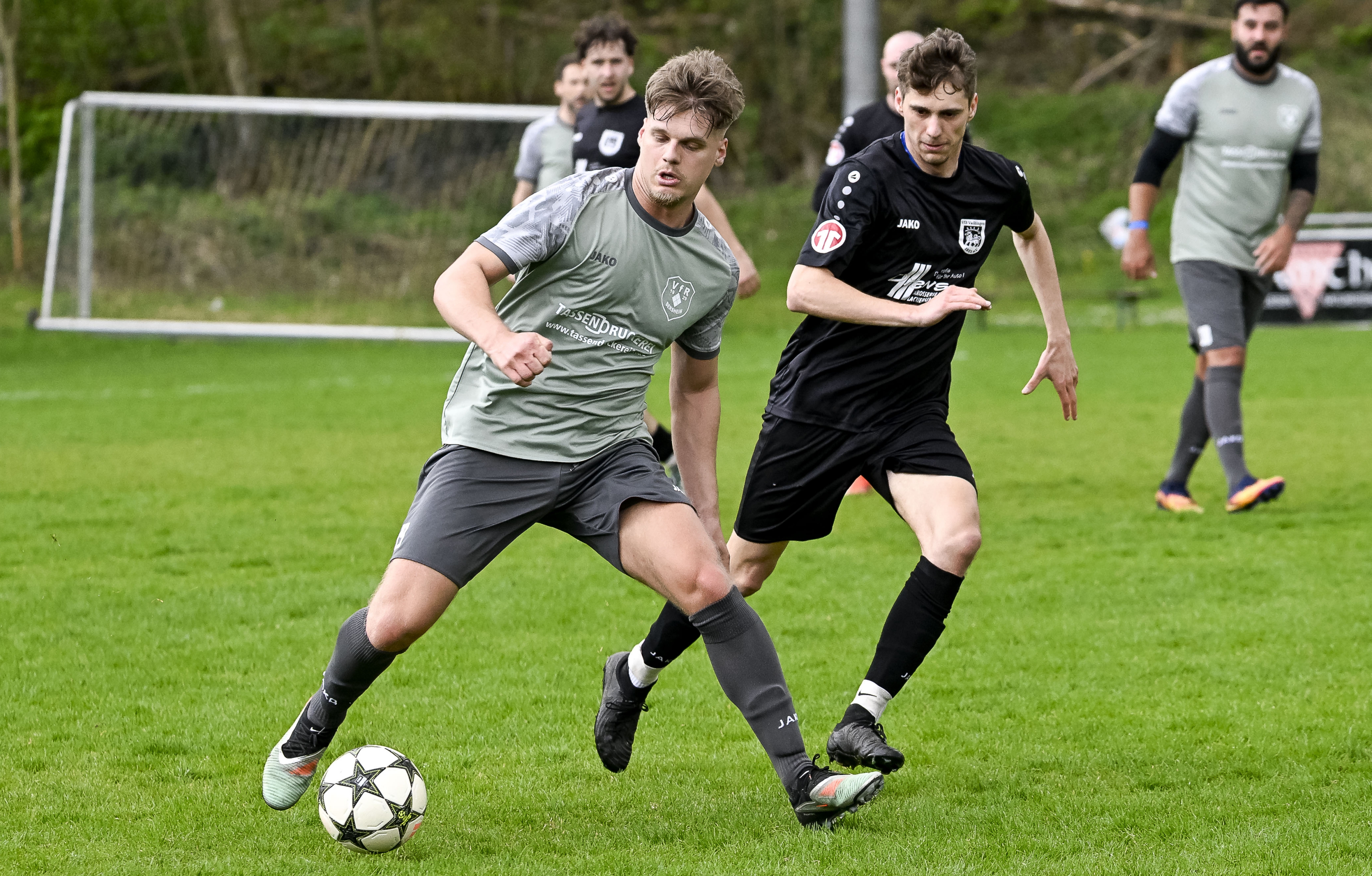 Der Sersheimer Kevin Pawlak (links) schirmt den Ball vor Noah Klein vom VfB Vaihingen II ab. Die Gäste aus dem Mettertal gewinnen das Spiel der Kreisliga B 6 mit 2:0. Foto: Leitner