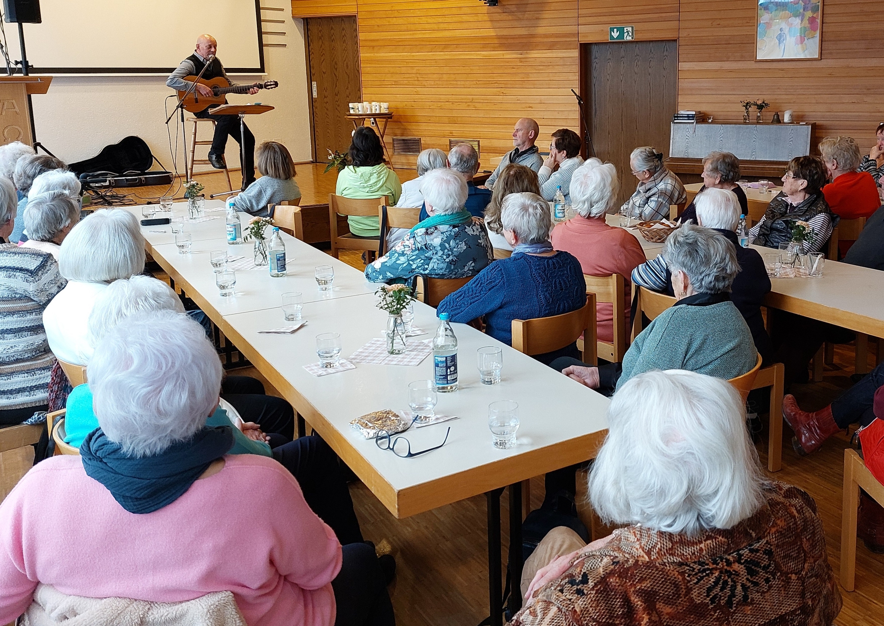 Thomas Knodel sorgt mit seinen unterhaltsamen und zum Nachdenken anregenden Liedern für einen gelungenen Seniorennachmittag in Horrheim. Foto: Leins