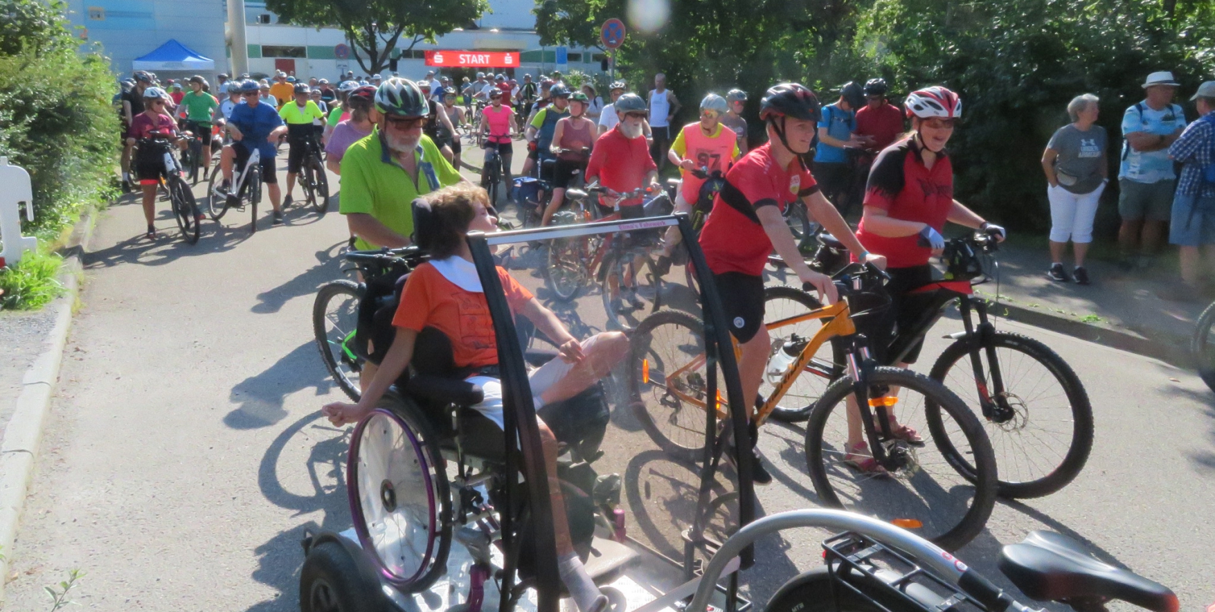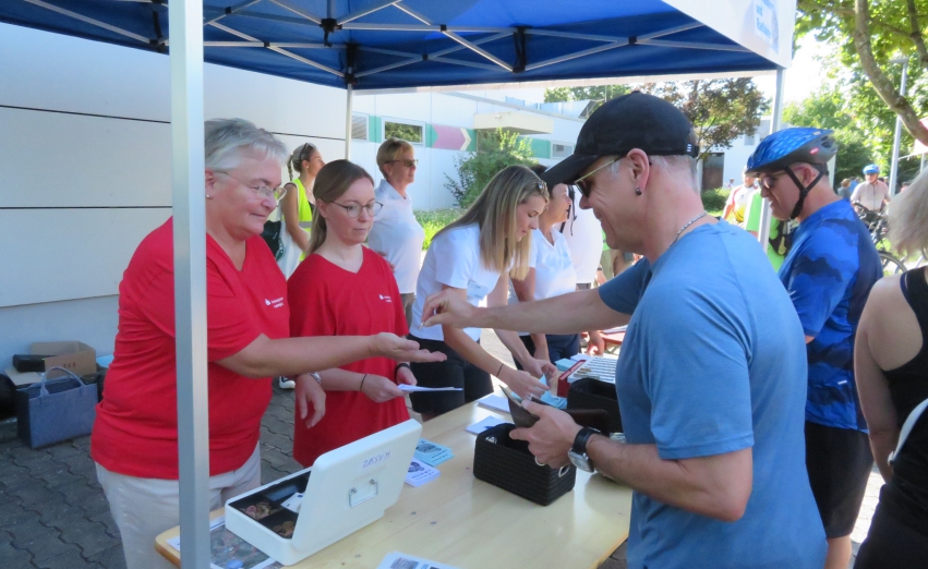 Man trifft auf viele Gesichter, für die die Teilnahme an der Sommerveranstaltung fast schon Ehrenpflicht ist. Der Andrang am Startkartenschalter, besetzt mit Mitarbeiterinnen der VKZ und der Kreissparkasse, schafft den Andrang ohne Probleme. Die Elektroquote der Räder ist enorm hoch, doch es gibt auch noch die alten Drahtesel. So startet zum Beispiel Armin Knust mit einem gut 60, 70 Jahre alten Rad der Marke Gritzner. Immerhin hat es fünf Gänge. Und im Scheinwerfer ist ein Tacho eingebaut.