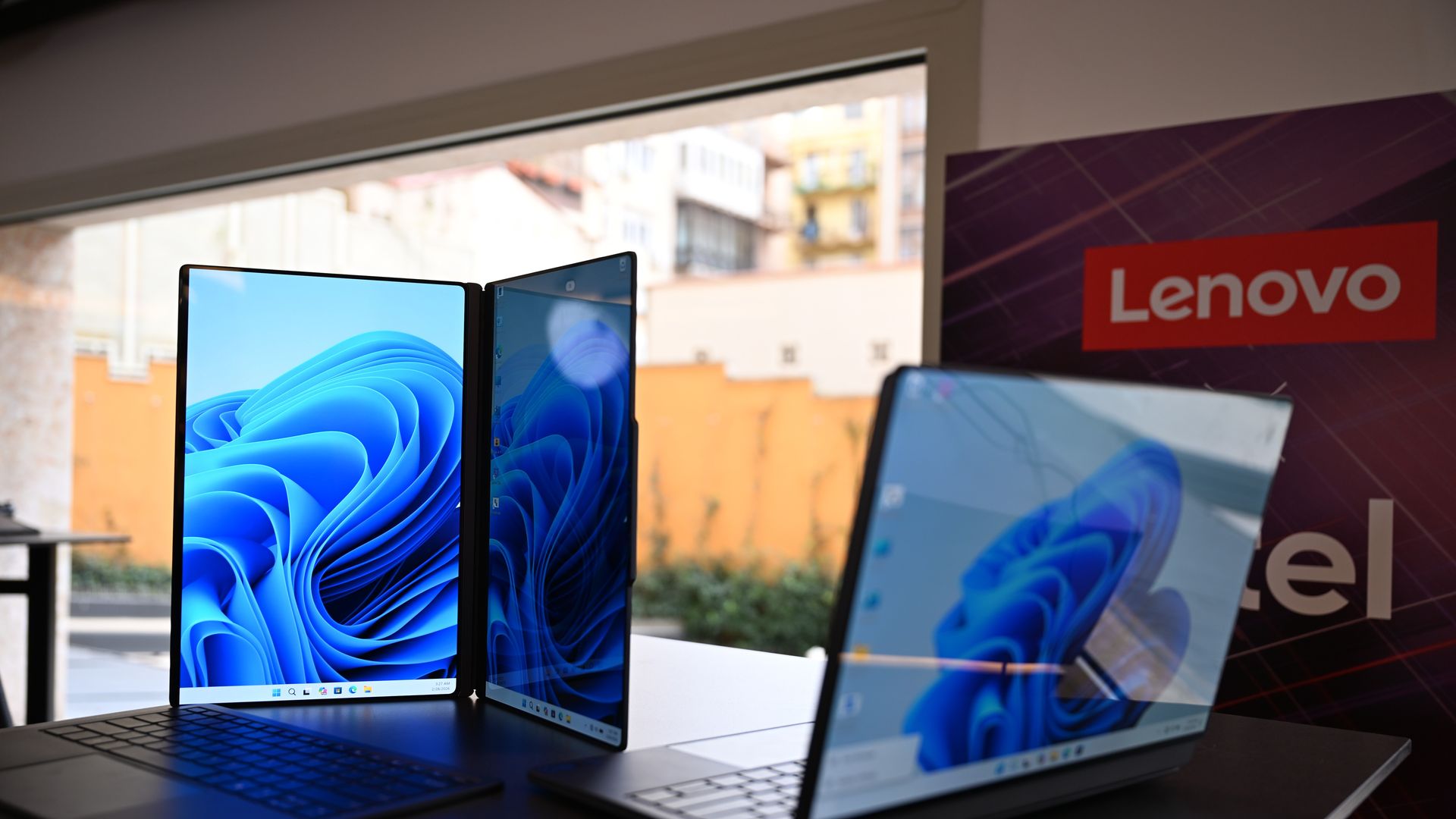 Barcelona - Der Computerhersteller Lenovo tüftelt an einem Laptop mit doppeltem Monitor. Bei der am Montag startenden Mobilfunkmesse Mobile World Congress in Barcelona stellt das chinesische Unternehmen ein Gerät vor, bei dem der zweite Monitor zunächst auf der Rückseite des Frontmonitors befestigt ist – der Nutzer selbst kann ihn also nicht sehen, aber eine Person, die vor ihm sitzt. Die beiden können sich dann ein Video oder Fotos ansehen, ohne nebeneinanderzusitzen. Das könnte etwa in Verkaufssituationen helfen.