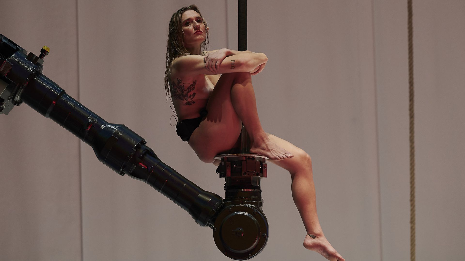 Performancekünstlerin Sophie Duncan während einer Aufführung der Inszenierung „Sancta“ von Florentina HolzingerFoto: dpa/Staatsoper Stuttgart/Matthias Baus