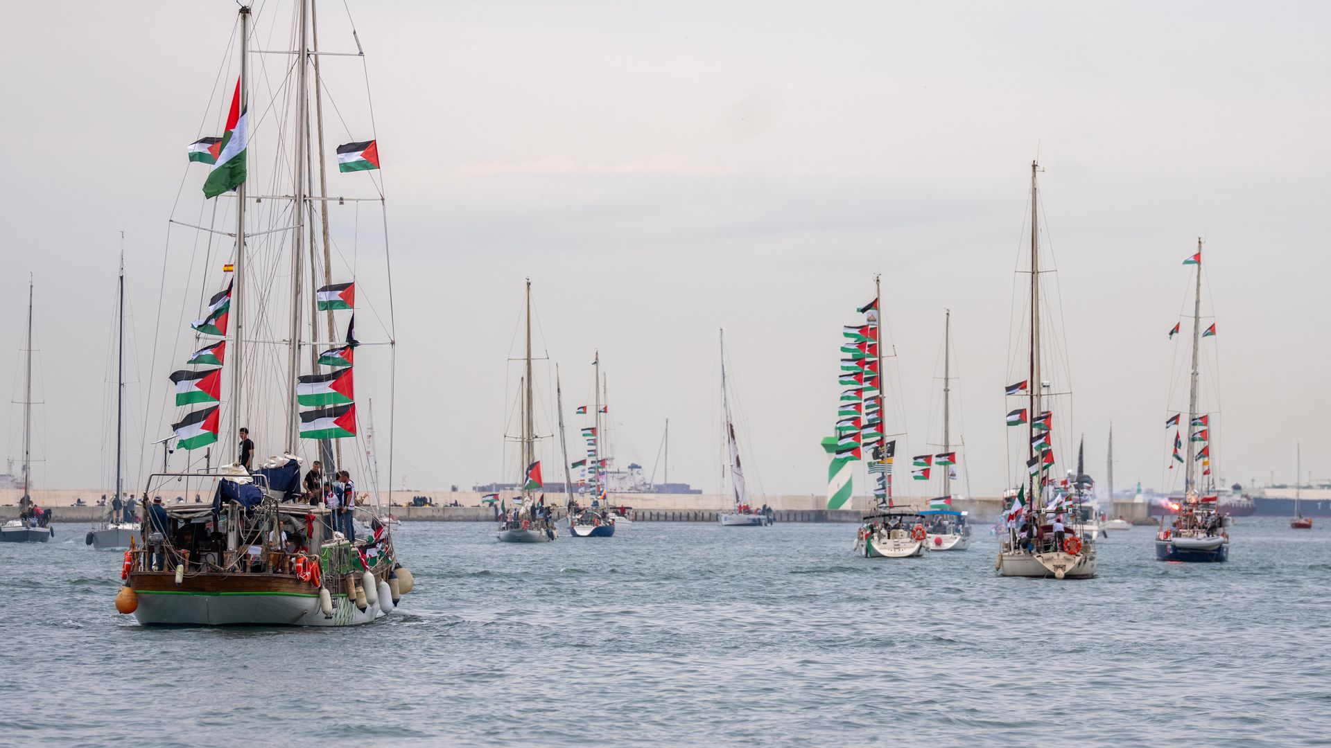 Die propalästinensischen Aktivisten wollen erneut versuchen, mit Dutzenden Booten die israelische Seeblockade des Gazastreifens zu durchbrechen und Hilfsgüter in die Konfliktregion zu bringen. Die Flotte werde von einem Schiff der spanischen Hilfsorganisation Open Arms und vom Arctic Sunrise des Umweltverbandes Greenpeace, einem früheren Eisbrecher, begleitet, hieß es.