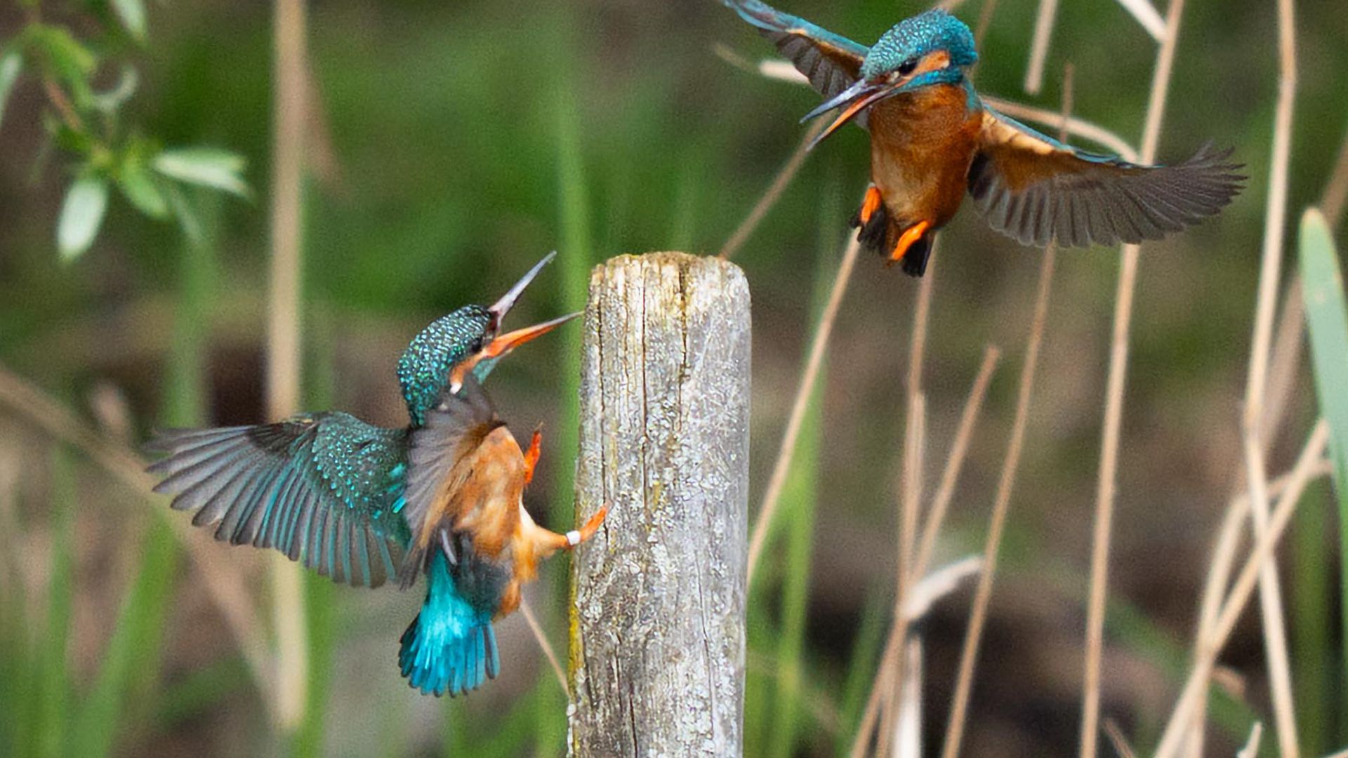 Eisvögel im Flug in der Nähe von Broxbourne in Großbritannien.Foto: James Manning/PA Wire/dpa