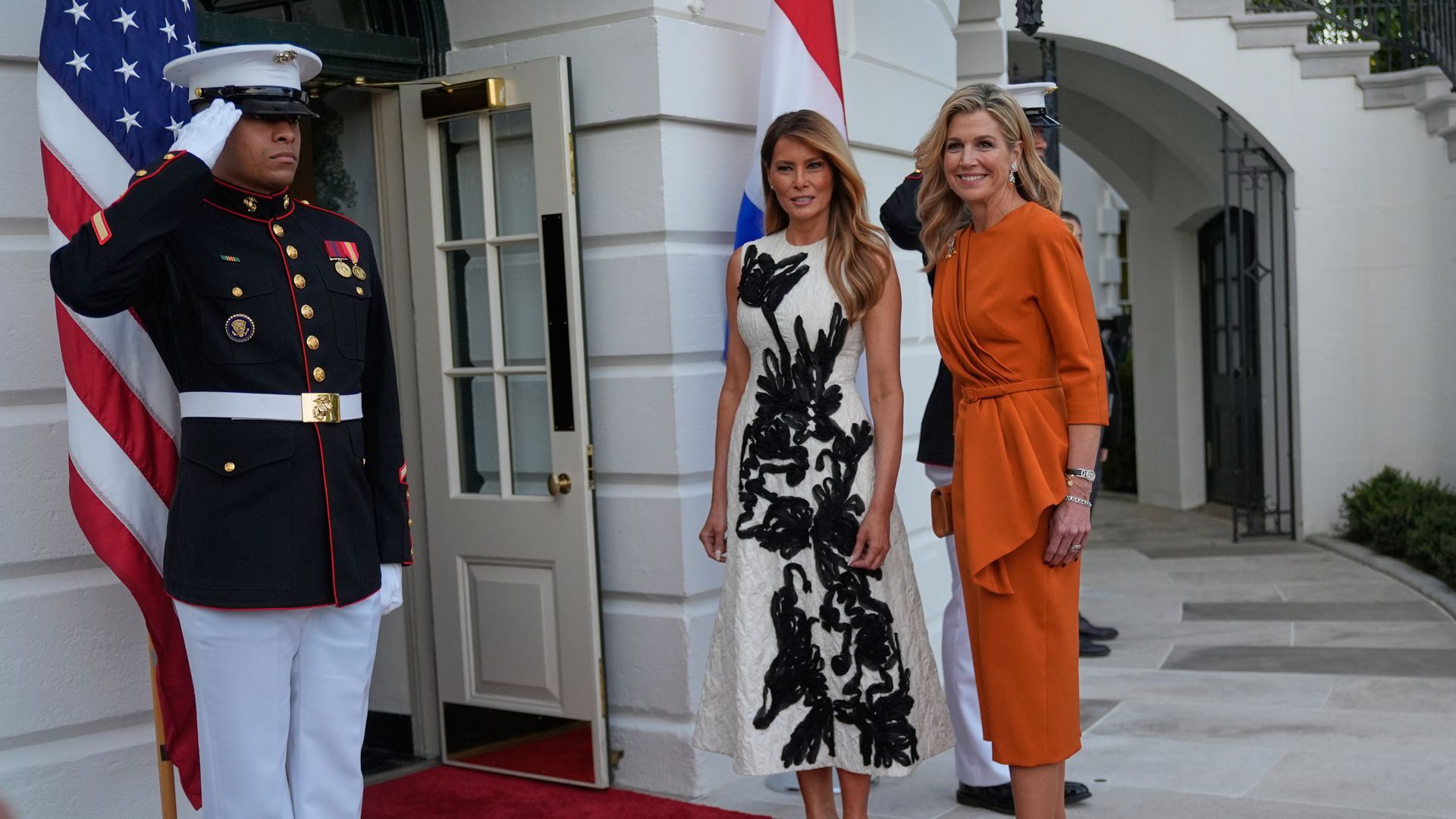 First Lady Melania Trump (l) und Königin Máxima der Niederlande betreten das Weiße Haus in Washington.Foto: Manuel Balce Ceneta/AP/dpa