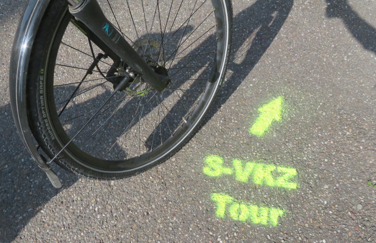 Da geht’s lang bei der S-VKZ-Tour am heutigen Samstag mit Start (10 Uhr) und Ziel Hochdorf. 72 solche Markierungen haben die eifrigen Helfer vom Rad Sport Verein Vaihingen auf die Wege gesprüht. Die Farbe löst sich mit der Zeit wieder ab. Foto: Arning