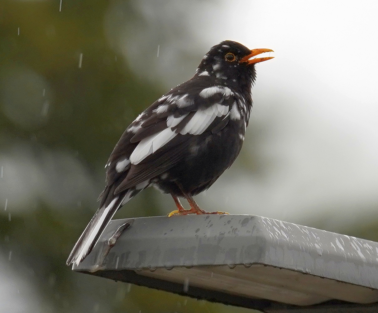 „Diese Amsel in Horrheim war mir bereits letztes Jahr durch ihr schwarz-weißes Gefieder (Leuzismus?) aufgefallen. Gestern blieb sie dann lange genug für die Aufnahme sitzen“, schreibt Jochen Scharpf zu seinem Foto. Leuzismus ist laut Landesbund für Vogel- und Naturschutz Bayern, eine hübsche Laune der Natur, bei der eine harmlose Mutation zu einigen Federn ohne Farbstoff und so zur „gescheckten“ Amsel führt.