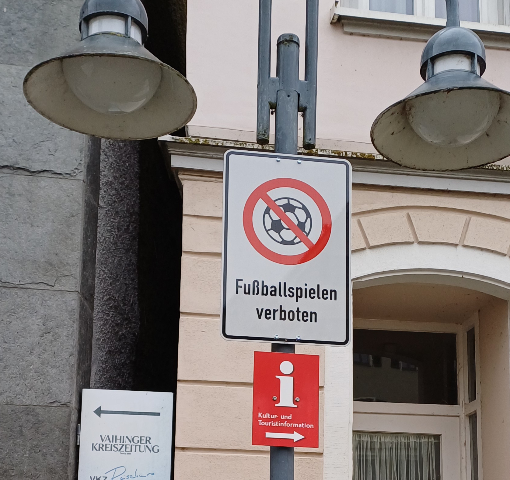 Ein neues Schild auf dem Vaihinger Marktplatz – ob’s was bringt? Bei Verstoß drohe ein Verwarnungs- oder Bußgeld von bis zu 55 Euro, berichtet die Pressestelle. Bei Kindern unter 14 Jahren könne man aber kein Verwarnungs- oder Bußgeld erheben. Foto: Rücker