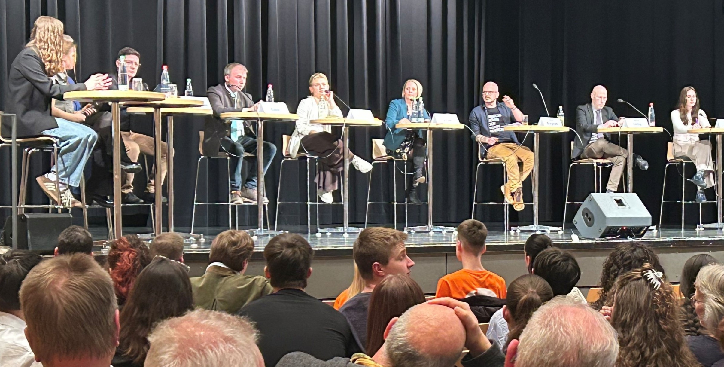 Sieben Kandidatinnen und Kandidaten stellen sich den Fragen in der Vaihinger Stadthalle. Foto: Mross