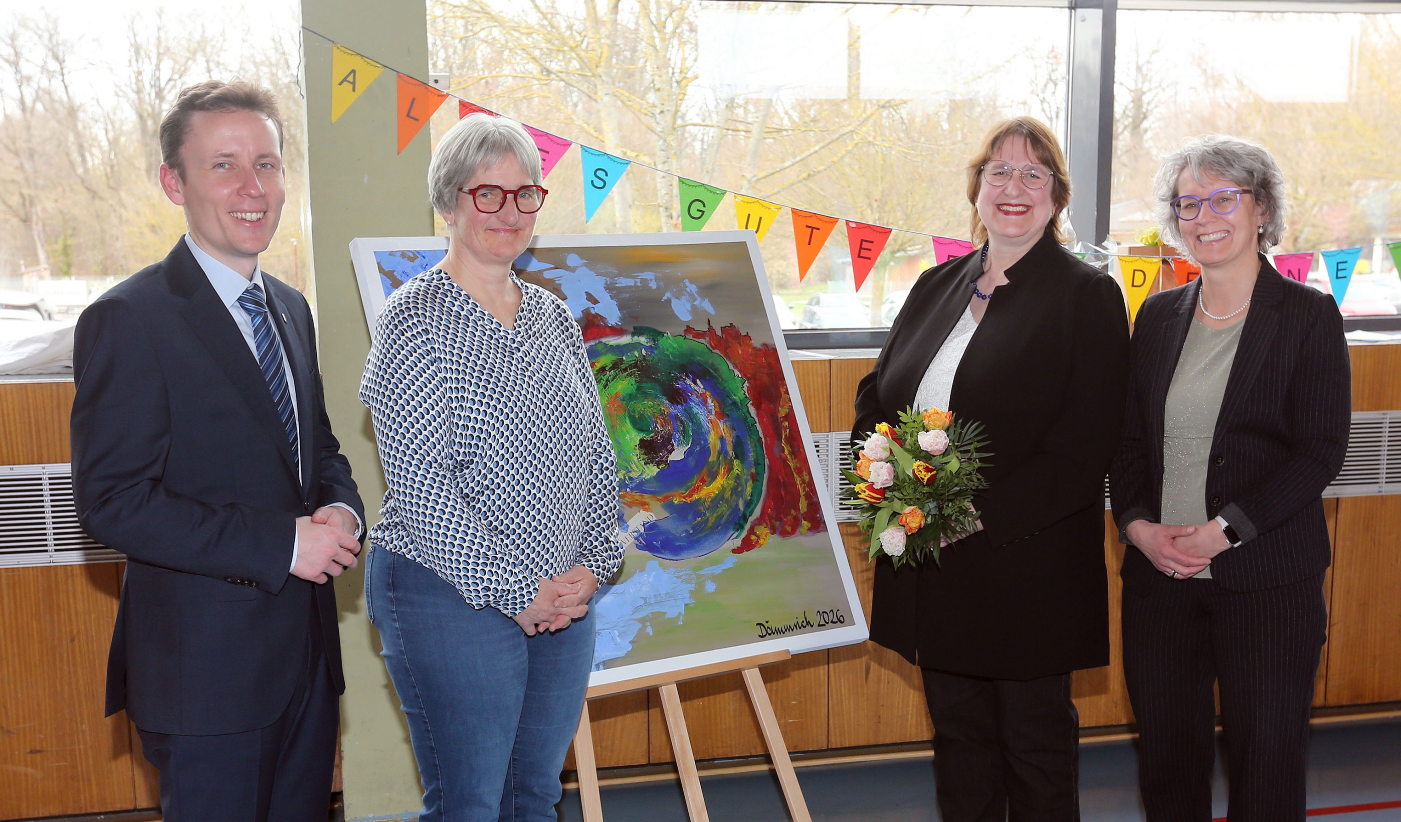 Feierliche Amtseinsetzung (von links): Bürgermeister Carsten Willing, Konrektorin Christiane Weigold, Rektorin Inge Dämmrich und Sprengel-Schulrätin Bettina Raiser. Foto: Küppers