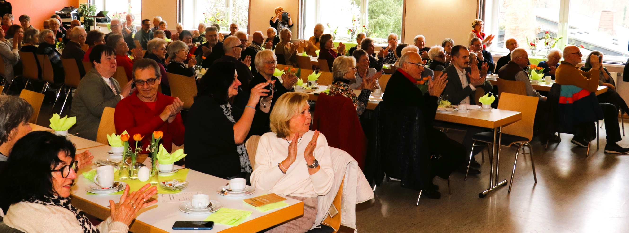 Unterhaltsames Beisammensein bei Kaffee und Kuchen: Etwa 100 ältere Bürgerinnen und Bürger nehmen am Seniorennachmittag teil. Fotos: Gergen