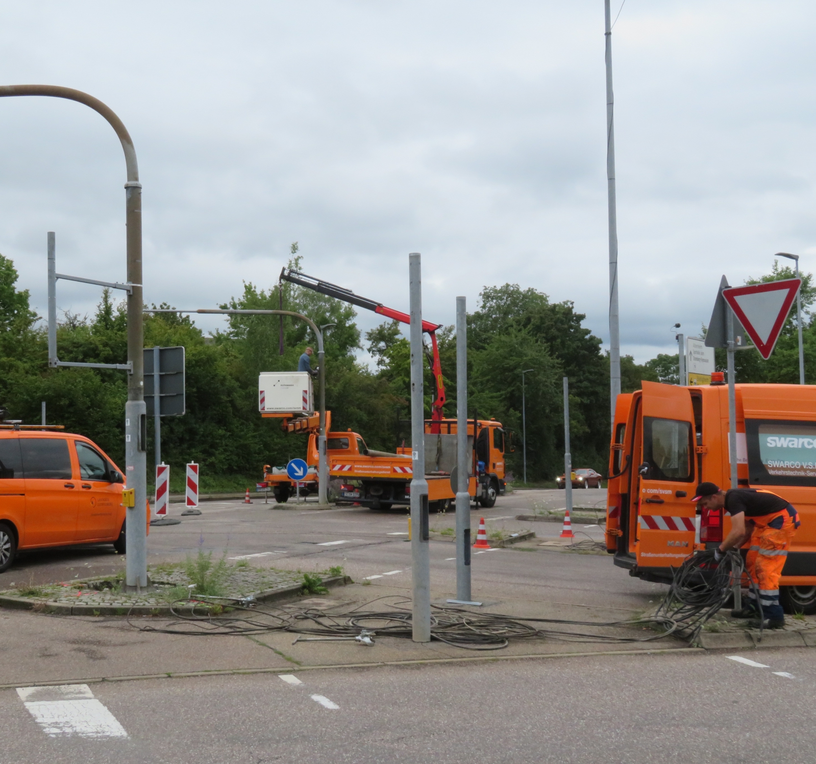 Die Sanierung der Franckstraße in Vaihingen geht pünktlich los. Geplante Dauer: acht Wochen. Zuerst wird die Ampelanlage abgebaut. Foto: Arning