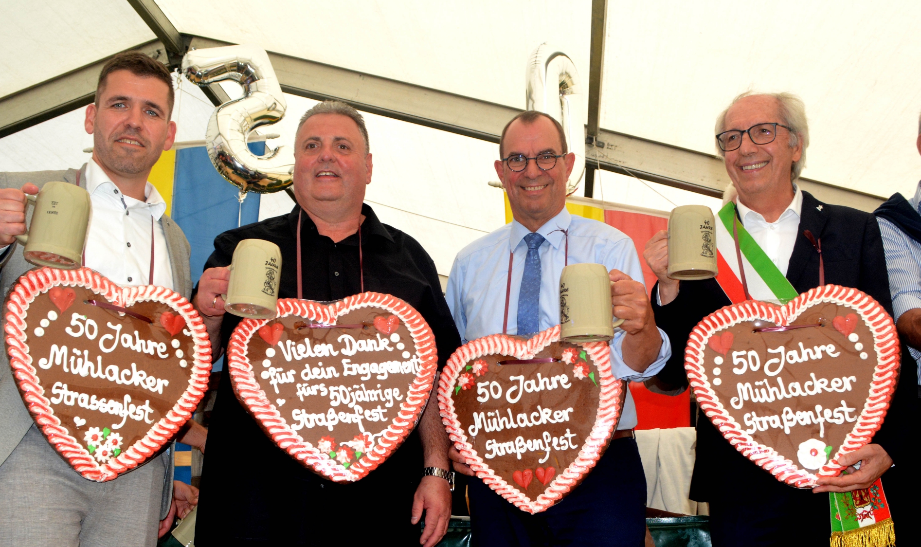 Sie feiern gemeinsam das 50. Mühlacker Straßenfest (von links): Sven Schrade, Jochen Schray, Frank Schneider und Mariano Scotton.