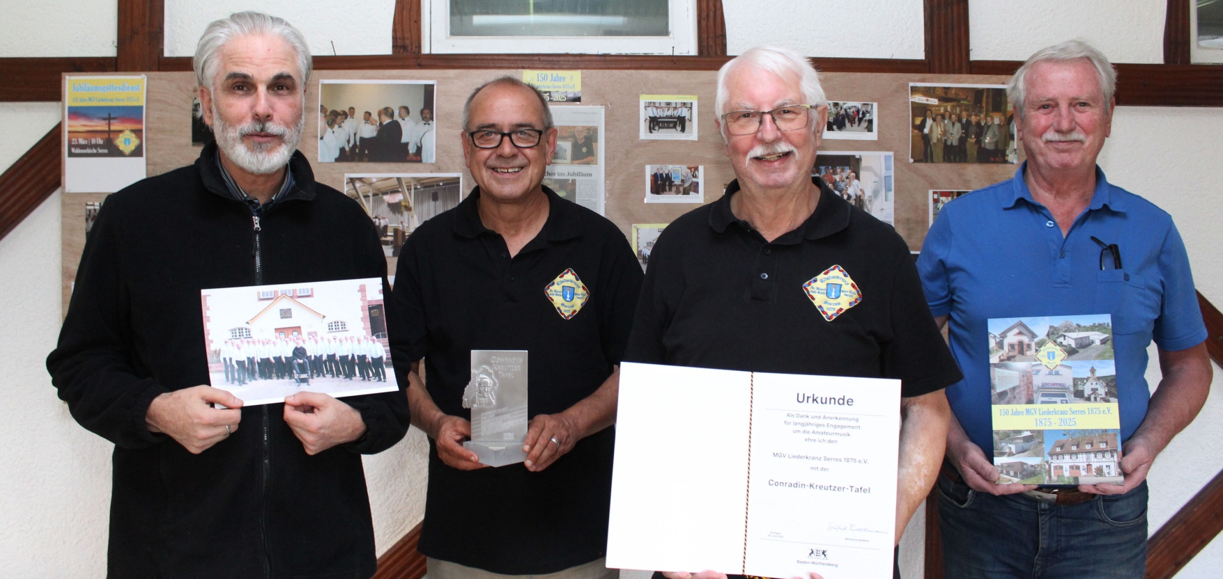 Ein neuer regionaler gemischter Projektchor 3.0, der in Serres probt, schwebt Dirigent Bernd Philippsen, Uwe Bolz, Eberhard Gille und Jürgen Schwirtz (von links) ab September vor. Foto: Prokoph