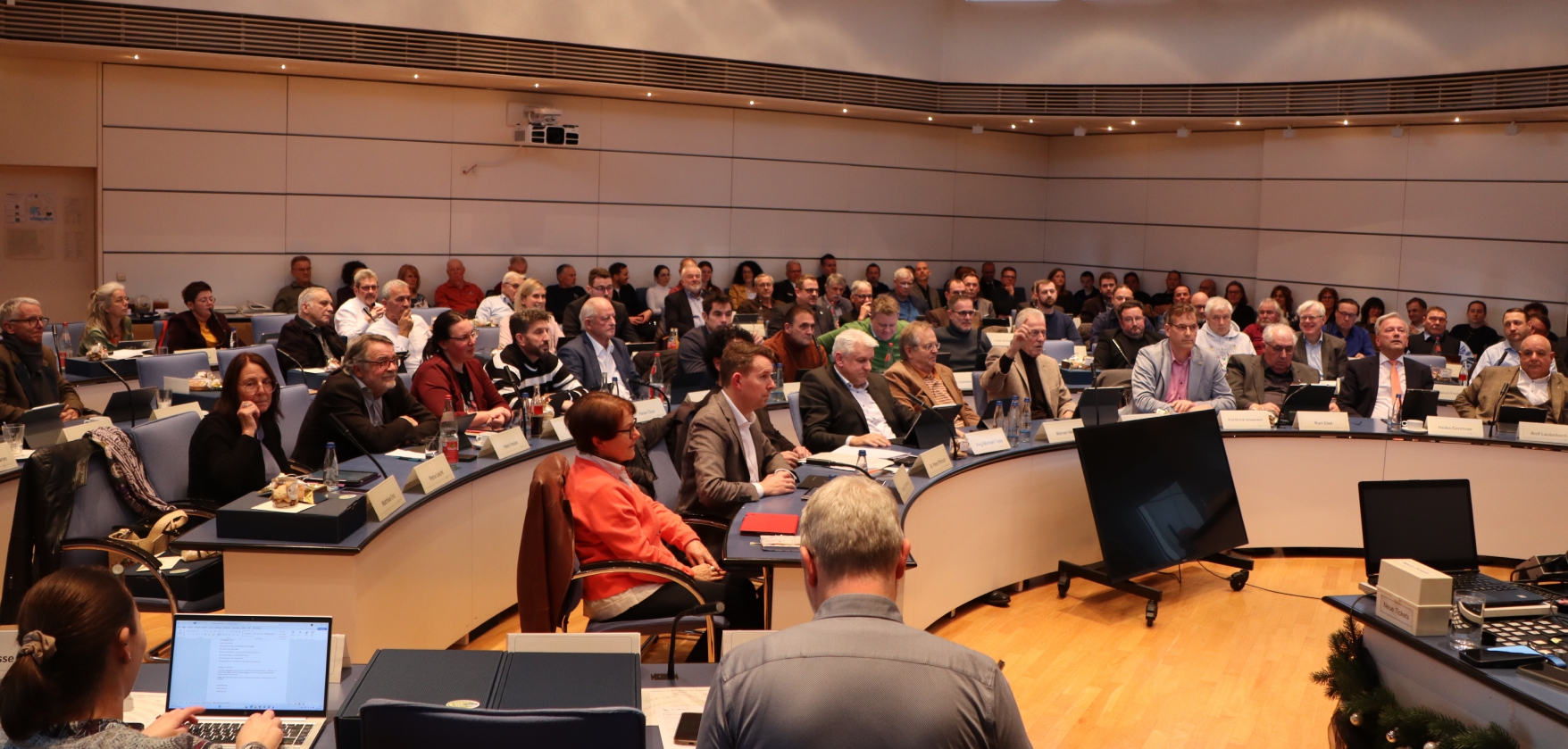 Mit nur einer Ja-Stimme von Jürgen Kurz (Mitte) verabschiedet der Kreistag des Enzkreises den Haushalt für 2026. Alle anderen Mitglieder des Gremiums enthalten sich. Foto: Enzkreis