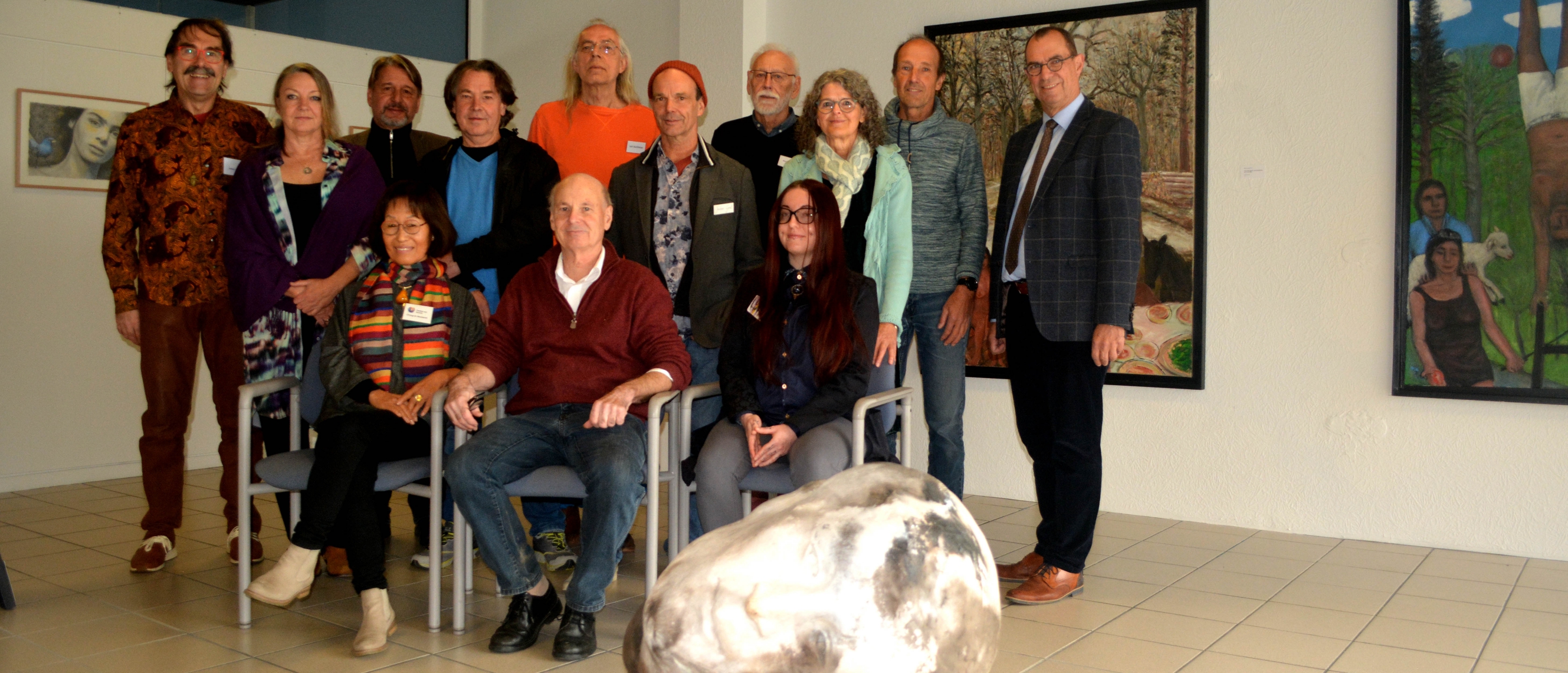 Die Kunstschaffenden der Künstlergruppe Mühlacker mit Mühlackers Oberbürgermeister Frank Schneider (rechts). Foto: Stahlfeld