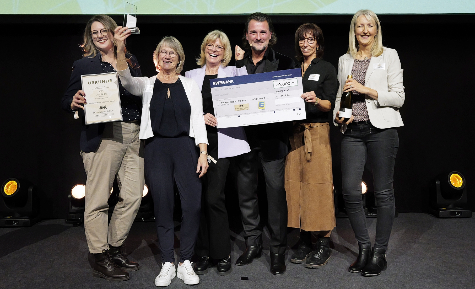 Karin Eckstein, Geschäftsführererin der Illinger Familienherberge Lebensweg (Zweite von links) bei der Preisverleihung in Stuttgart. Foto: Günter Bergmann/SWM.N