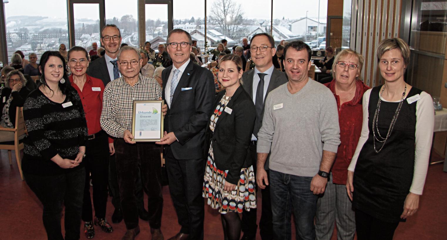 Erfolgreiche Zertifizierung: Bernhard Schneider (Fünfter von links) und Martin Suchaneck (Vierter von rechts) übergaben die Urkunde an Mitarbeiter und Helfer des Gerok-Stiftes. Fotos: Banholzer