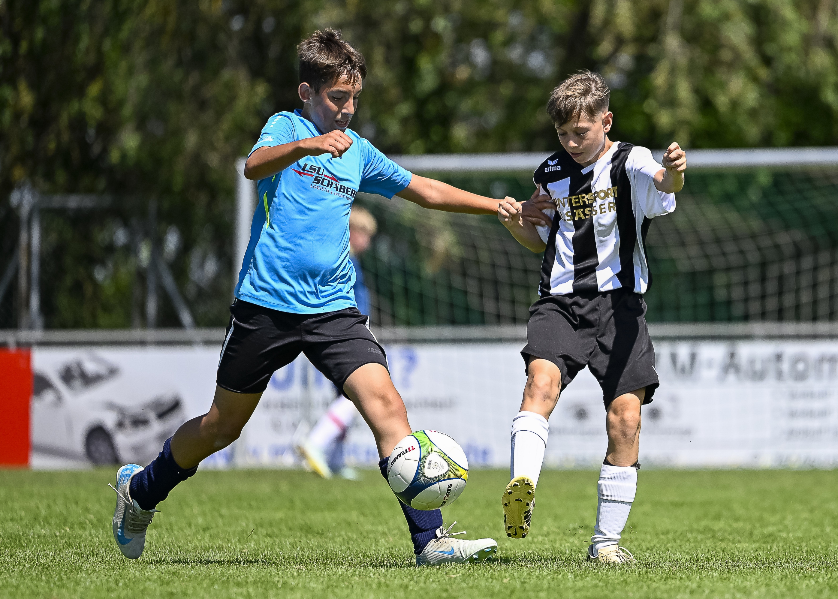 Sie schenken sich nichts: Die D-Junioren des VfB Vaihingen (blaues Trikot) und der SGM Iptingen. Foto: Leitner