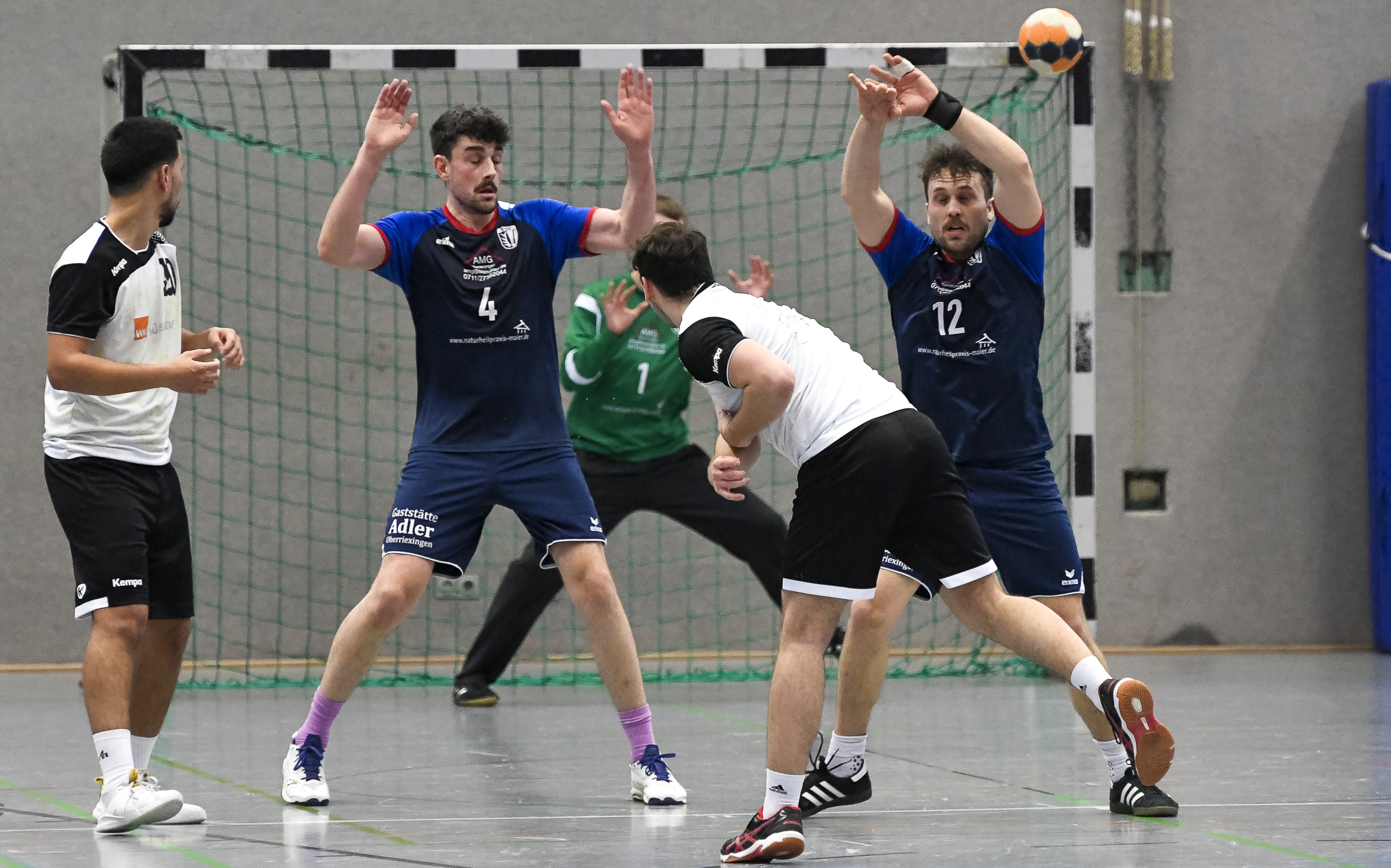 Die Abwehr des TSV Oberriexingen um Jan Gergen (2. von links) und Tobias Rothacker (rechts) soll auch beim TSV Asperg II sicher stehen. Foto: Leitner