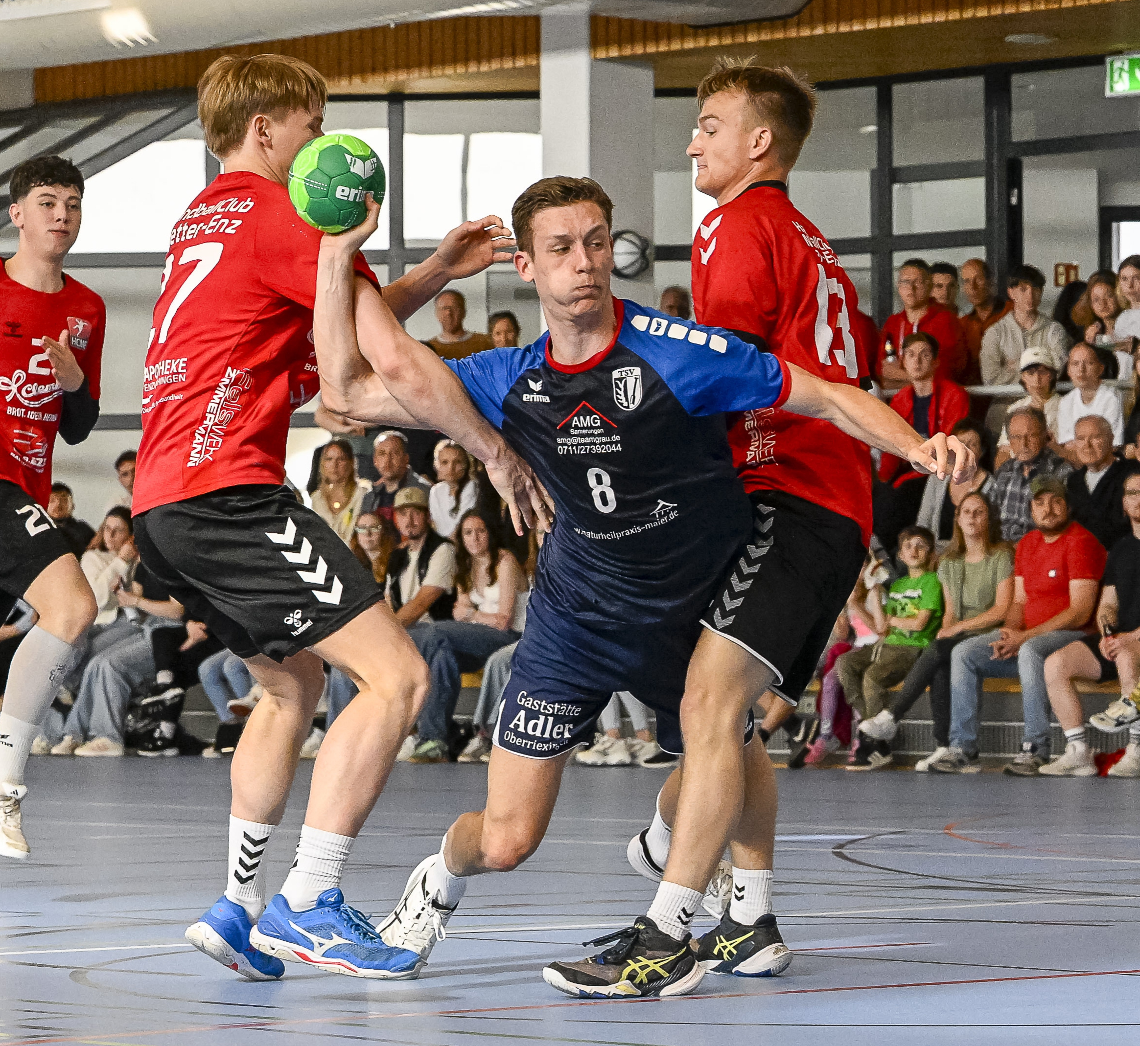 Auch in dieser Saison wird Till Stadelmann (Mitte) vom TSV Oberriexingen im Derby wieder auf den HC Metter-Enz treffen. Foto: Leitner
