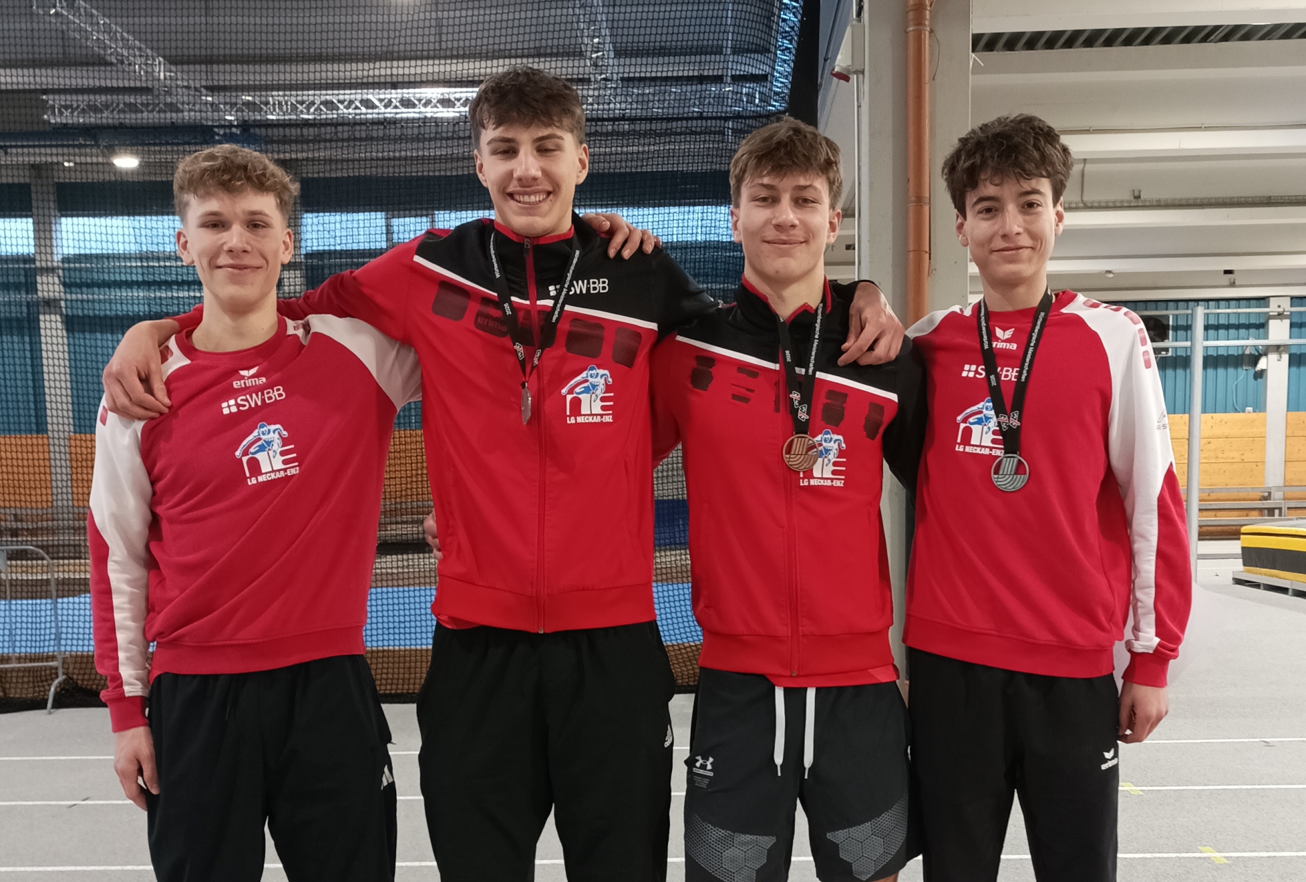 Lorenz Metzger (von links), Gero Noller, Konstantin Wünsche, Linus Totaro von der LG Neckar-Enz freuen sich über starke Leistungen. Foto: privat
