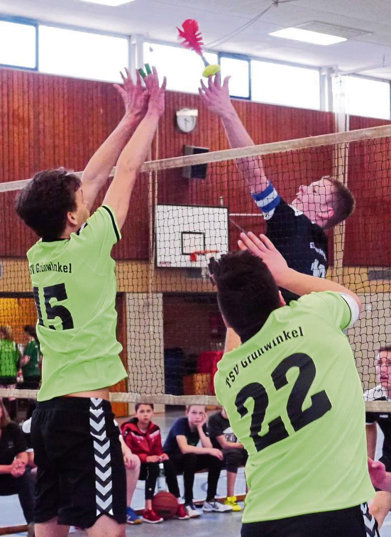 Farin Sparmann (hinter dem Netz) hat als Gastspieler bei Hausdülmen bei der DM im Mixedwettbewerb der 15- bis 18-Jährigen dominiert. Foto: Archiv/privat