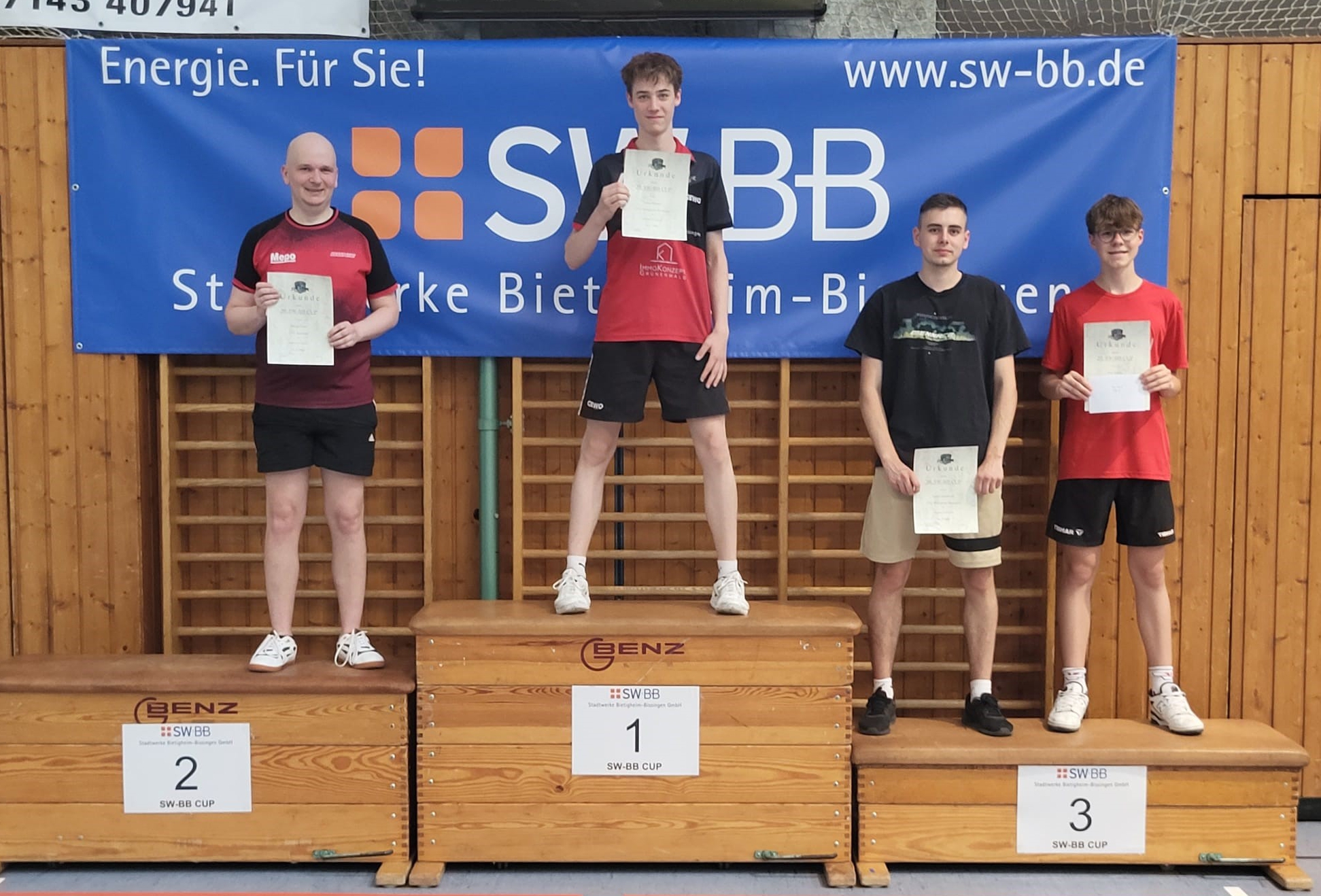 Die Sieger bei den Männern A. Philipp Vater (von links), Lasse Mähnert, Leon Lenischmidt und Silas Schurr. Foto: TTC Bietigheim-Bissingen