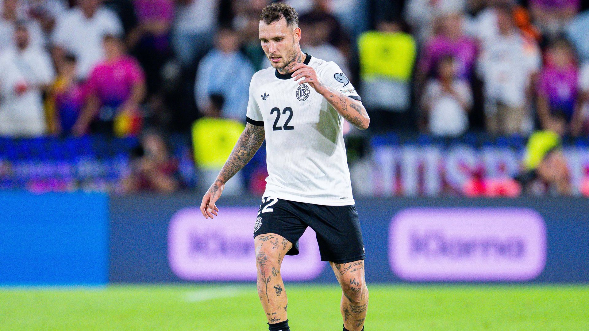 David Raum (Note 3): Der Konkurrent des überraschend nicht nominierten VfB-Profis Maximilian Mittelstädt auf der Linksverteidigerposition machte seine Sache am Montagabend ordentlich. Raum gab bisweilen mal wieder eher den Linksaußen als den Linksverteidiger – und brachte einige gefährliche Standards nach innen. Seine Ecke führte zum 1:0 durch Nick Woltemade.Foto: IMAGO/Noah Wedel