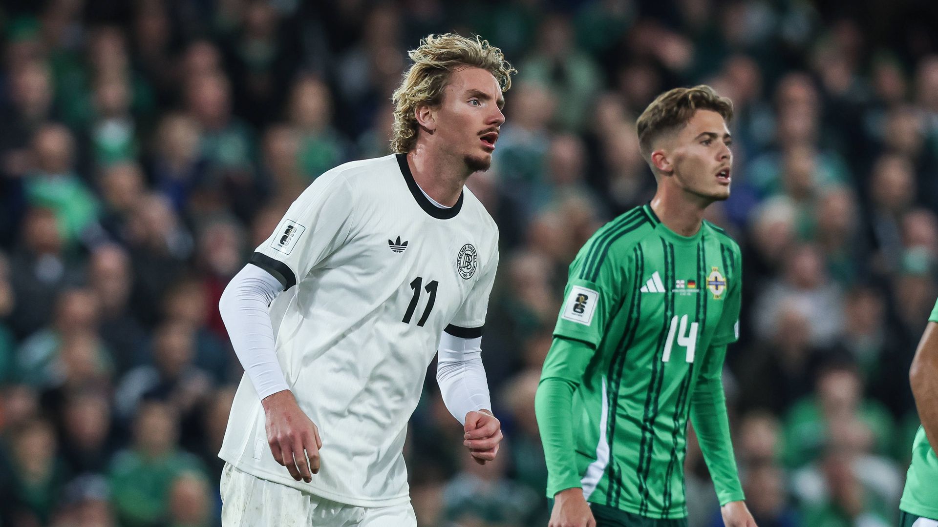 Das WM-Qualifikationsspiel gewinnt Deutschland gegen Nordirland nach einem Treffer von Nick Woltemade mit 1:0.Foto: Christian Charisius/dpa