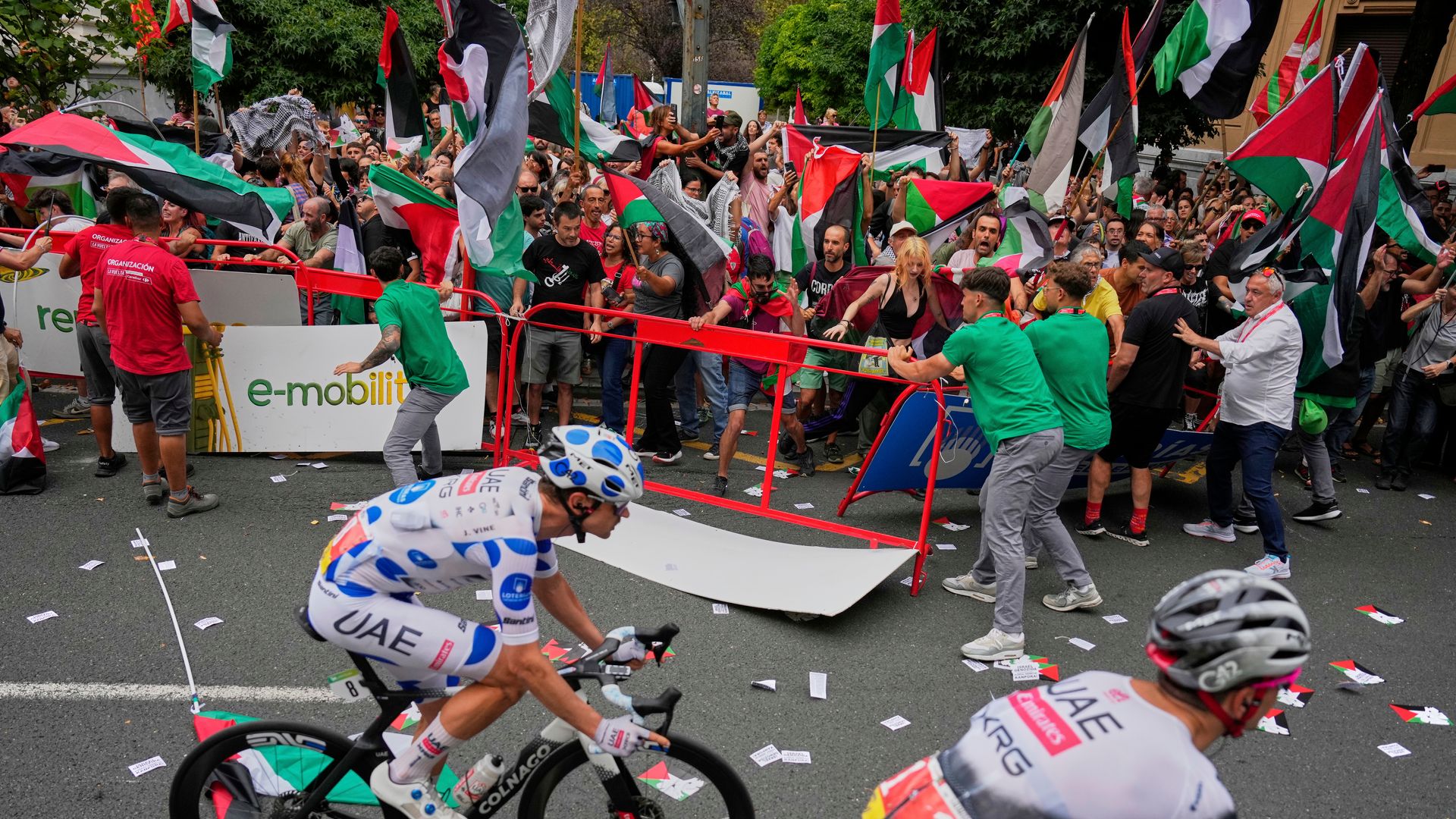 Auf der elften Etappe der Vuelta a España war es durch die Proteste gegen den Gaza-Krieg zu einem Eklat gekommen. Zahlreiche Demonstranten mit palästinensischen Fahnen im Zielbereich veranlassten die Rennjury dazu, das Teilstück drei Kilometer vor dem Ziel zu beenden. Einen Etappensieger gab es nicht.