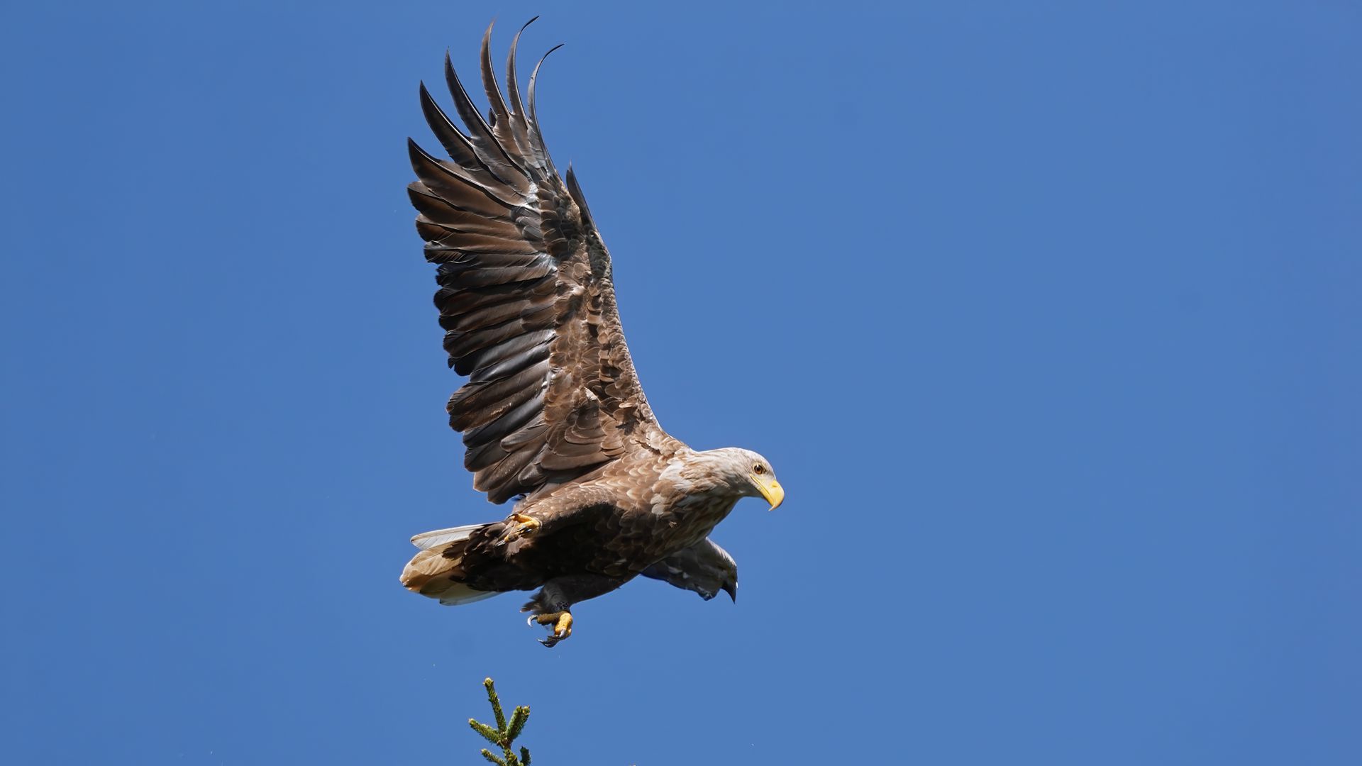 Wer den Seeadler sieht, sollte bei der Greifenwarte anrufen oder eine Mail schreiben. Romeo falle vor allem durch seine Größe auf - er hat laut Mitarbeiterin eine Flügelspannweite von rund zwei Metern. Außerdem trägt der dunkle Vogel Bänder an den Füßen, an denen die Greifvögel festgebunden werden.