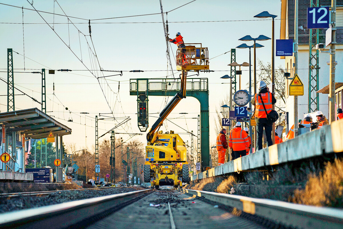 An der Riedbahn zwischen Mannheim und Frankfurt wird zurzeit über Monate mächtig gebaut.Foto: dpa/Andreas Arnold