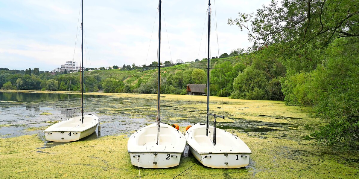 Auch die Segler haben zunehmend Probleme mit den vielen Wasserpflanzen im Max-Eyth-See.Foto: Andreas Rosar